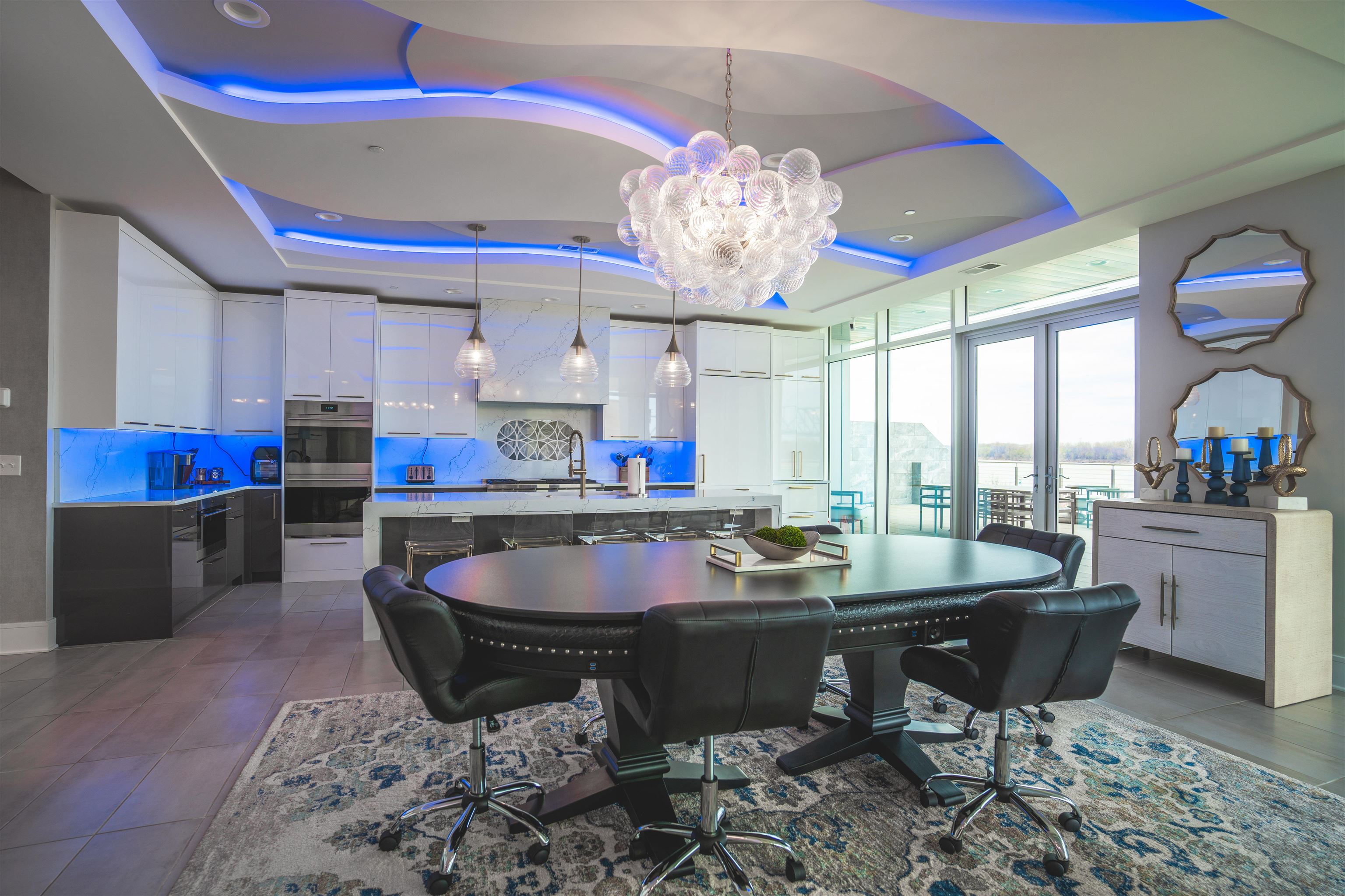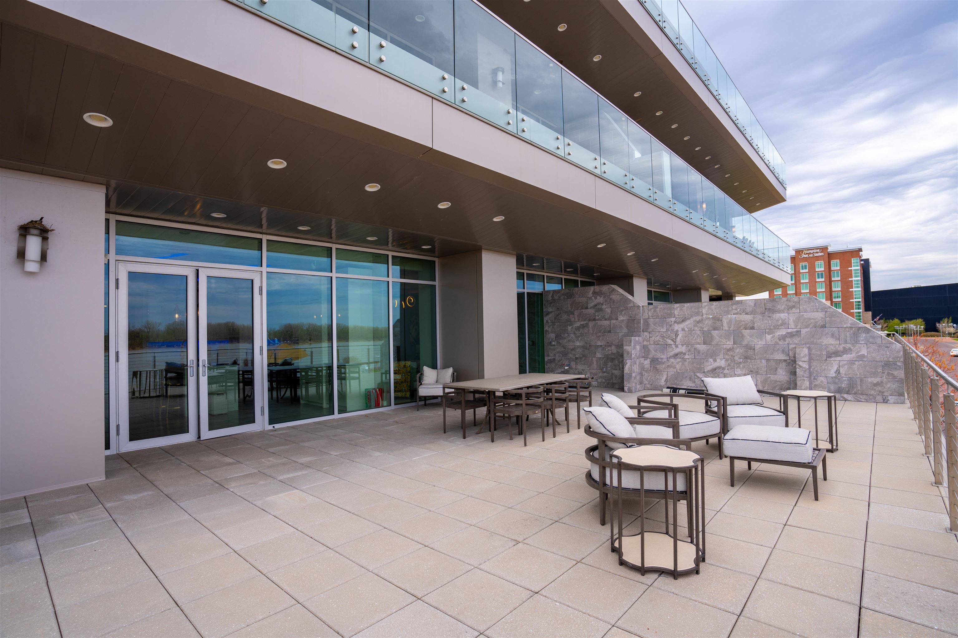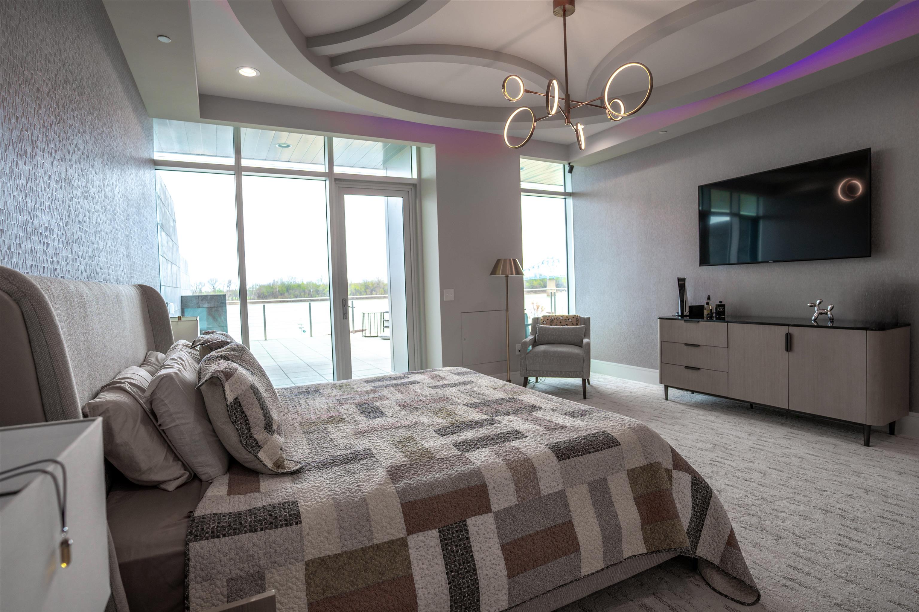 Outstanding Location with Incredible Views! This 2nd floor luxury condo is located at the showcase 'Enclave Riverfront Living' building in downtown Owensboro, KY. The two private outdoor patios are ideal for entertaining and boast panoramic views of the Ohio River, Smother's Park, Owensboro Convention Center and other downtown attractions. The large floor plan includes three bedrooms, three and a half bathrooms, a large open concept kitchen, modern fireplace, luxury finishes, outdoor grille station and top notch amenities. Floor to ceiling windows provide outstanding views and plenty of natural light. The ground floor garage is included with space for one car. The building includes private secure access for residents, food and dining options and is walking distance to all of downtown Owensboro's attractions. This residence is the pinnacle of downtown luxury living! All appliances on site, cabinets, counter tops, flooring, carpet, light fixtures, plumbing fixtures. Does not include the outdoor kitchen appliances and cabinets. Indoor Living 3,045 sq ft, Patio space 1,485 sq ft. One garage Furnished as is available: additional $65,250.00