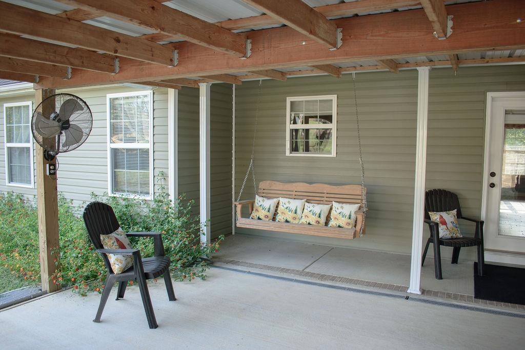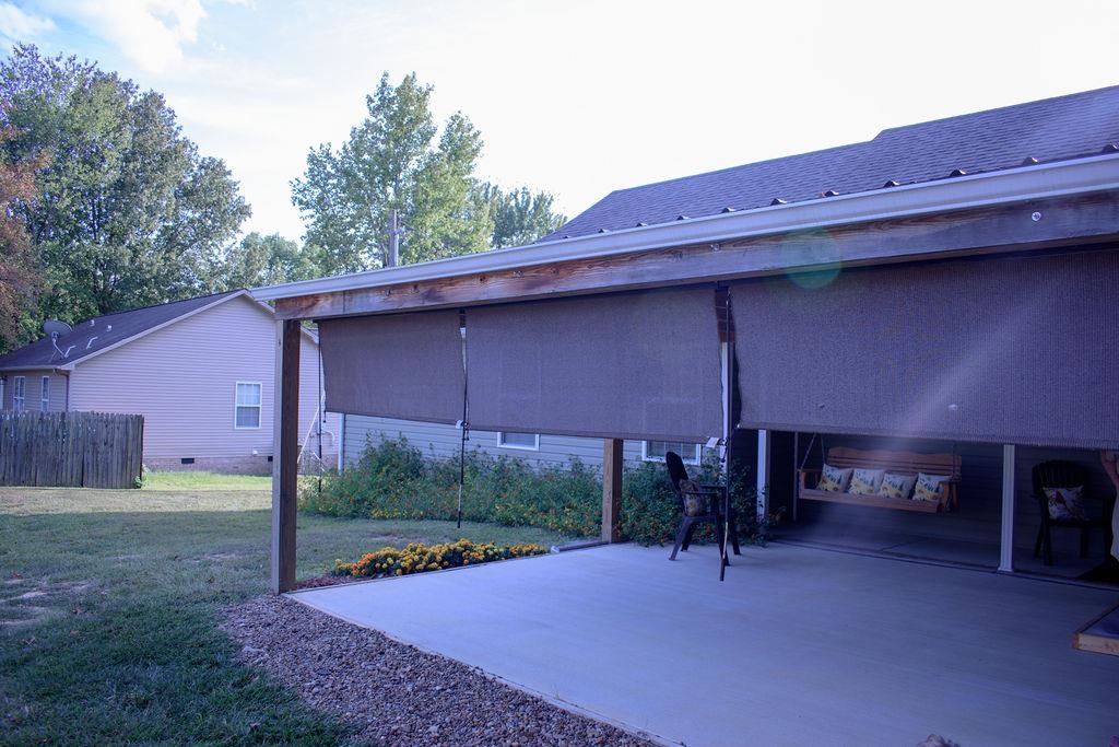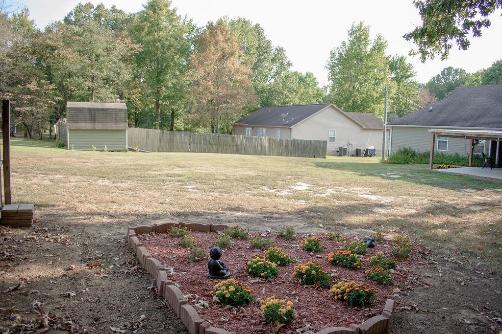 A vaulted living room ceiling welcomes you as you enter this home's door off the front porch. The dining area is separated by an eating bar of the kitchen that includes all stainless-steel appliances. The dining area also has a double door leading to the large covered concrete rear porch. Underneath the porch is a large storm shelter; an amenity not often seen. What peace of mind you have right out the back door! With not one, but two pantries and two linen closets this home offers amble storage. The split bedroom concept offers privacy sometimes only seen in larger rooms. The master bedroom includes a high trayed ceiling, large master bath with walk-in shower, and two very large walk-in closets! What a surprise to now have for your own! Upstairs is a nice-size bonus area that can be used for anything you need it to be. The garage includes an outlet to hook your generator in to power the breaker box when you are down in the storm shelter during an electrical outage and storm. On a quiet street of this great neighborhood, with the storage building in the back yard and all the amenities this home offers, you'll be proud to call this home!