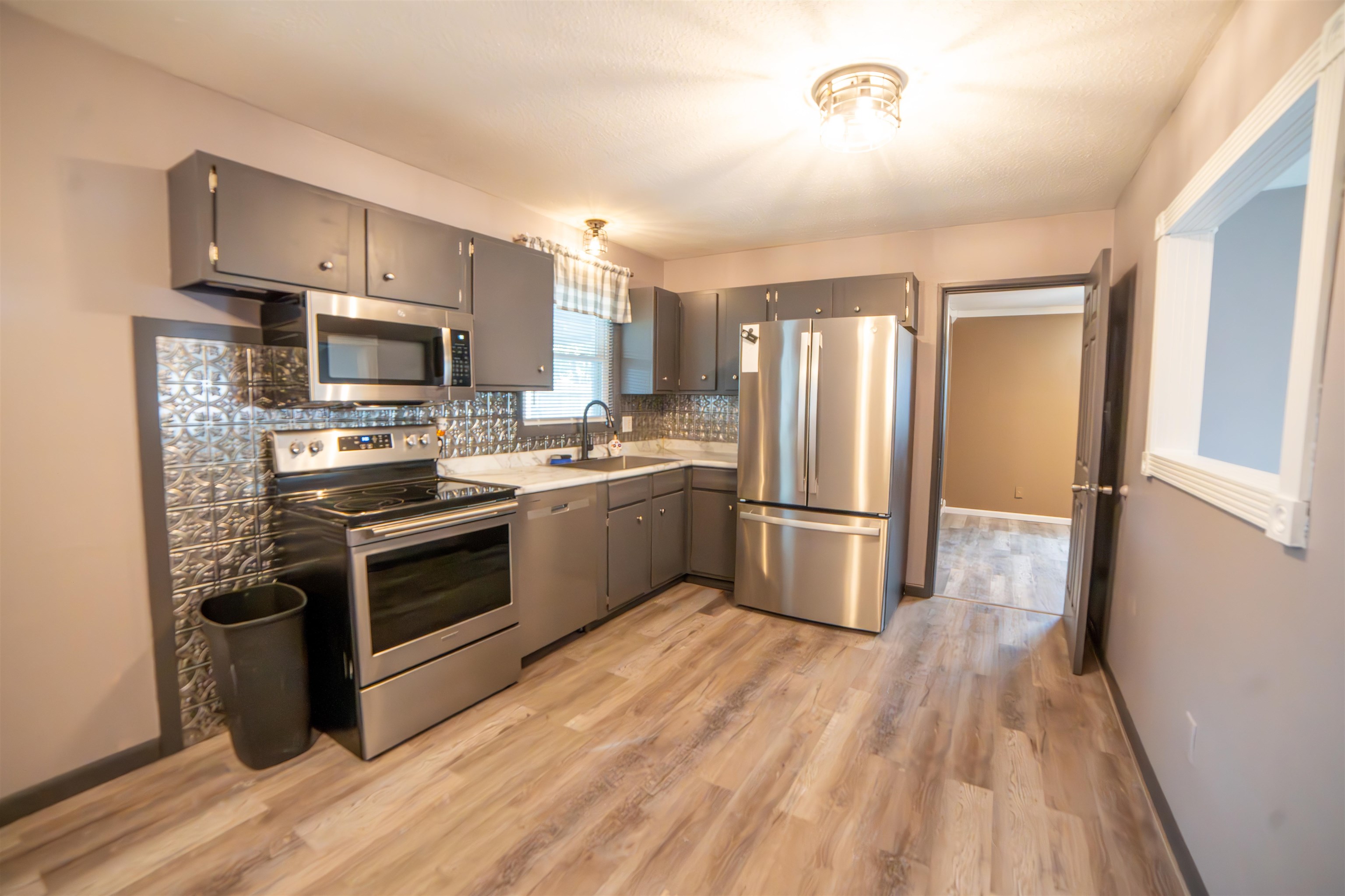 Welcome to your new home! Nestled on a peaceful cul-de-sac, this charming all-brick residence boasts three spacious bedrooms and a beautifully updated bathroom. Step inside to discover all-new flooring that enhances the warmth and appeal of the living spaces. The heart of the home features a stunning farmhouse sink, complemented by brand-new energy-efficient appliances and stylish countertops, all updated in 2024. The exterior of the home has been professionally painted, and the yard has been meticulously landscaped and serviced, creating a picturesque setting. Enjoy your outdoor space with a brand-new 12x12 gazebo, perfect for relaxing or entertaining, and a 12x20 carport offering convenient parking. Additional highlights include a garage-doored 12x24 storage/shop building, ideal for all your tools and hobbies, along with an extra small storage building in the backyard. Recent upgrades include a new roof and gutters just three months old, a heating and air unit that’s only three years old, and a water heater also three years young. The bathroom has been thoughtfully updated with a modern sink vanity and luxurious shower accessories, including a rainmaker shower head. The updated interior and exterior lighting adds a touch of elegance throughout the home. Don’t miss your chance to make this beautifully updated home yours!