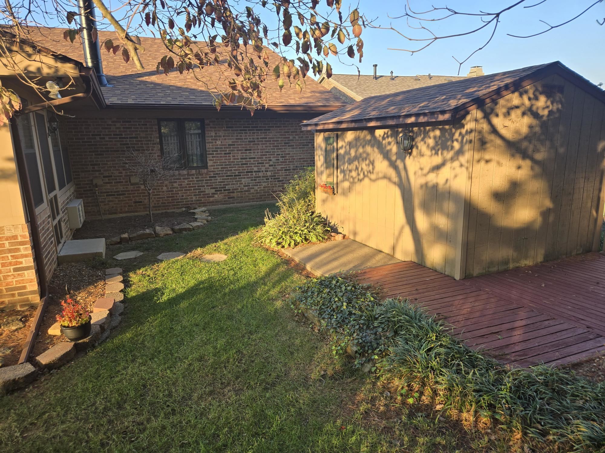 This property is vacant, has been professionally cleaned and is move-in ready. It features an open family/living/dining area in the central part of the home. There is an all-weather brick sunroom that opens into the family/dining area. The home also features a large separate den (finished with built-in shelves) between the kitchen and the two-car garage. The lot has additional open yard space on the west side of the property. The home is well landscaped and has a storage shed incorporated into the backyard setting.