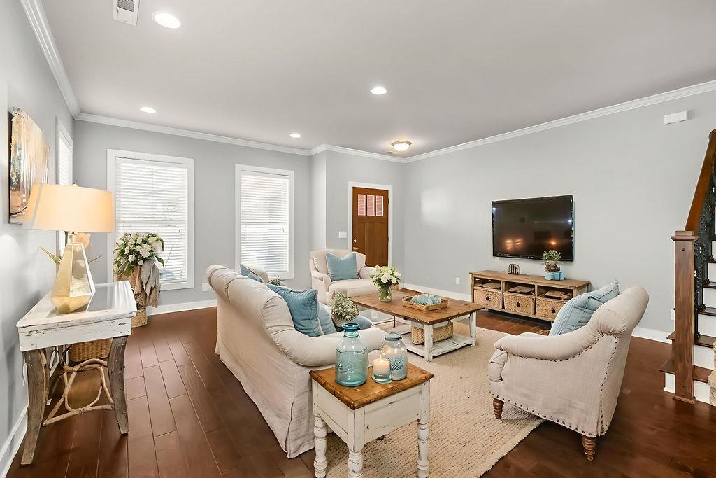 Living Room Description: Engineered Hardwood