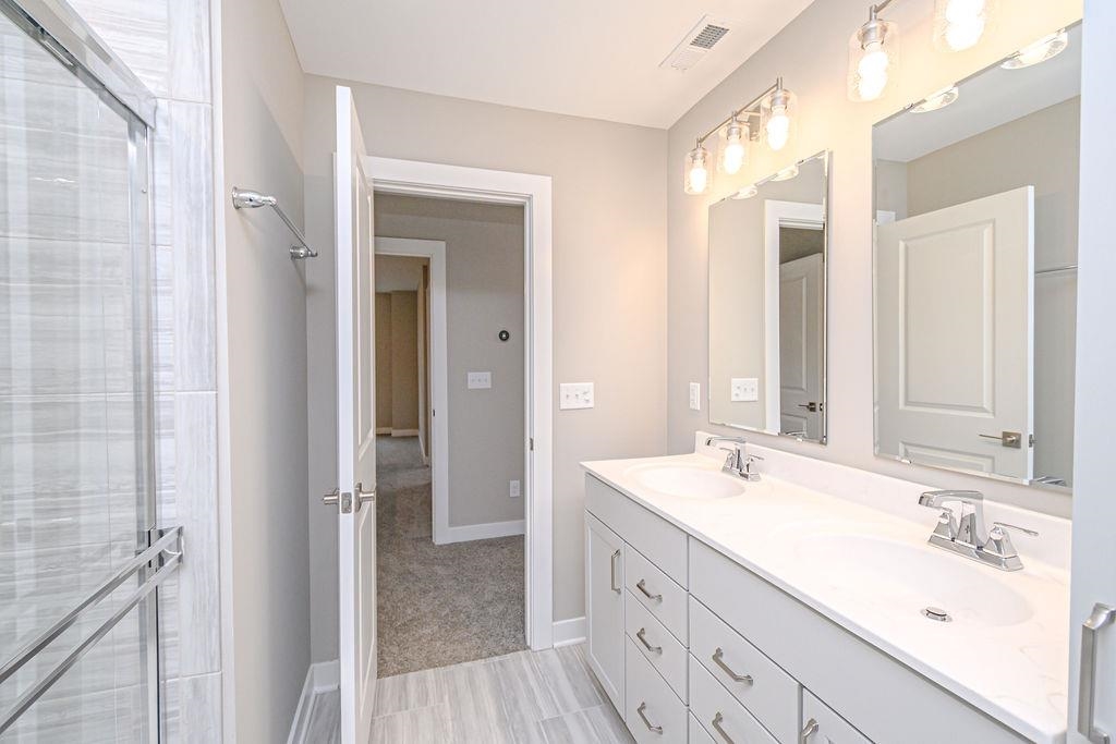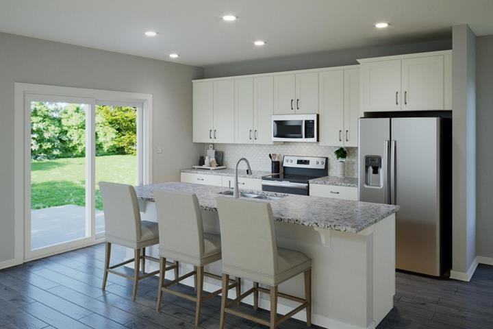 This home offers a spacious open-concept main floor featuring a bedroom and a full bath off the foyer. The family room flows seamlessly into the kitchen, which includes an island, a large walk-in pantry, and a dining area with access to the backyard. The upgraded kitchen layout includes granite countertops, a tile backsplash, and a stainless steel appliance package with a gas range. For your enjoyment, an expanded patio is located off the dining area. The stairs, conveniently located off the main living space, lead to an upstairs bonus room, perfect for a game room, playroom, homework area, or additional TV space. The expansive owner’s suite includes an ensuite bath with a double bowl vanity, a ceramic shower, and a walk-in closet. The second floor has three additional bedrooms, each with a walk-in closet, a second full bath, and a centrally located laundry room. RevWood Select Granbury Oak flooring is throughout the main living areas, and ceramic tile is installed in the wet areas. Jagoe TechSmart components are included. You’ll love this EnergySmart home! For a limited time, we will be offering a 4.75% rate incentive with Acrisure Mortgage (for FHA, VA, and USDA loans only). In addition to the rate, we are offering up to $2,500 in closing costs. Other restrictions apply. See the website for more details.
