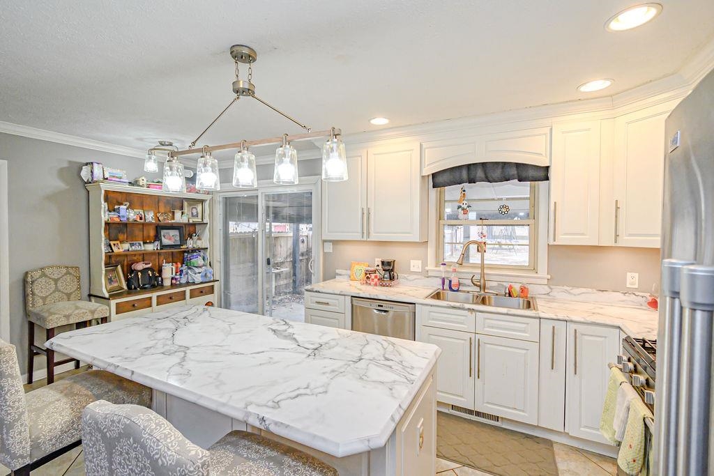 Situated on about an acre, this extra large, brick ranch in East Daviess County features a 50x30 attached shop plus a detached garage. With three bedrooms, two bathrooms, and over 1300 square feet, your family will have plenty of space to spread out! The living area's engineered hardwood floors flow naturally into the open-concept kitchen, which has a sizable island and stainless steel appliances. Enjoy the fresh air and scenery on the covered back porch. A carport, a two-car detached garage, and a pole barn with heat and air conditioning with over-sized garage doors are all located outside. Call now to take a look inside this lovely home!
