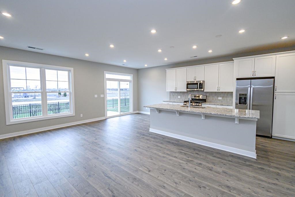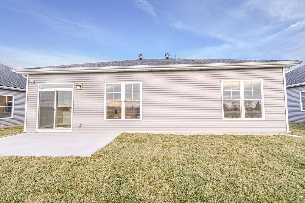 This single-story home offers plenty of living space with a functional and inviting layout. The kitchen features a large island, ample cabinet storage, and generous counter space, making it perfect for meal prep and entertaining. The kitchen includes granite countertops, a tile backsplash, and a stainless steel appliance package with a gas range. Adjacent to the kitchen, the dining area flows seamlessly into the spacious family room, creating an open and connected living area. For your enjoyment, an expanded patio is located off the dining area. The private owner’s suite, located at the rear of the home, includes a large walk-in closet and an ensuite bath with a double bowl vanity and a ceramic shower, providing a peaceful retreat. A second bedroom, full bath, laundry room, and two-car garage complete this home. Attic storage is accessible in the garage. RevWood Select Granbury Oak flooring is throughout the main living areas, and ceramic tile is installed in the wet areas. Jagoe TechSmart components are included. You’ll love this EnergySmart home! For a limited time, we will be offering a 4.75% rate incentive with Acrisure Mortgage (for FHA, VA, and USDA loans only) In addition to the rate, we are offering up to $2,500 in closing costs. Other restrictions apply. See the website for more details.