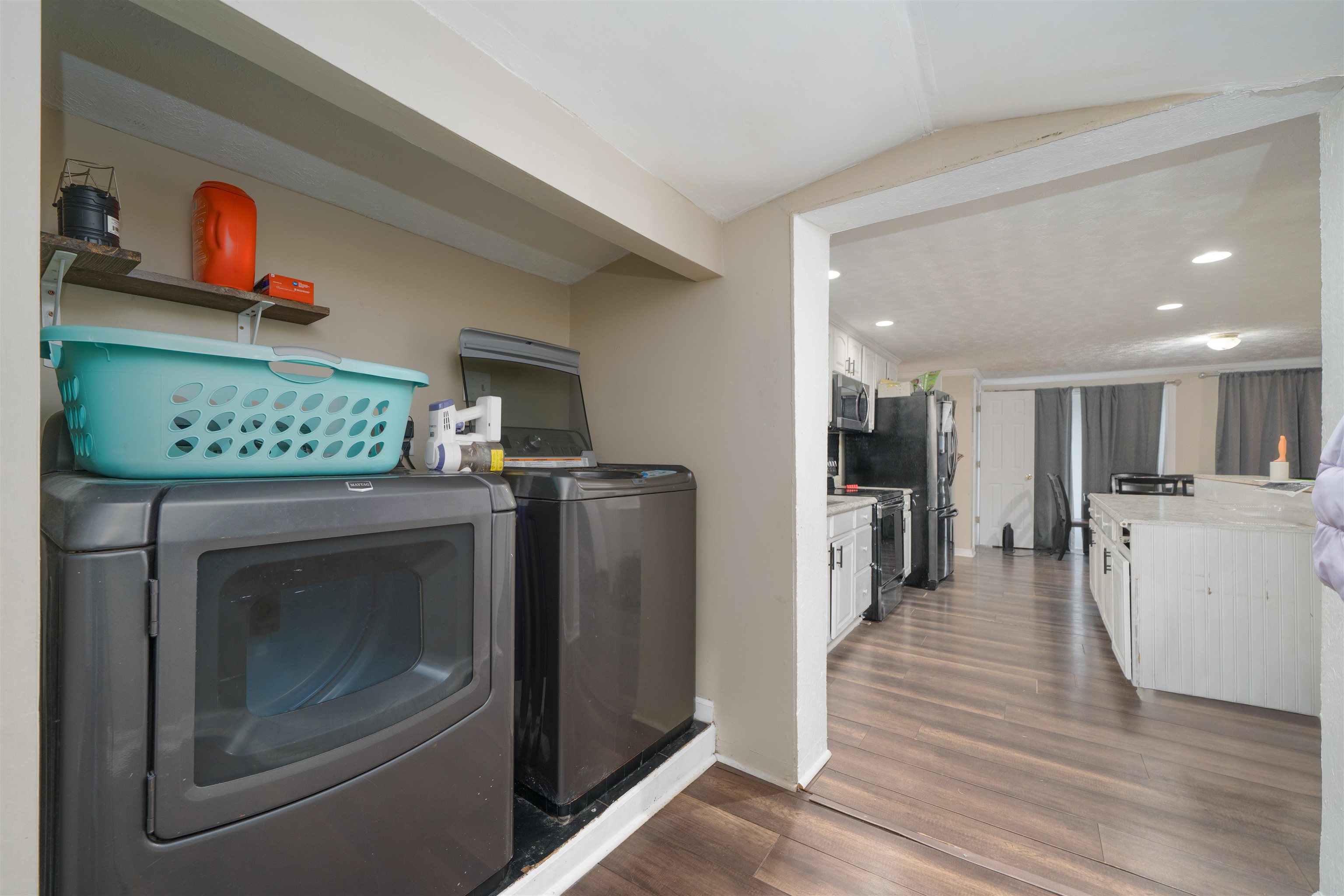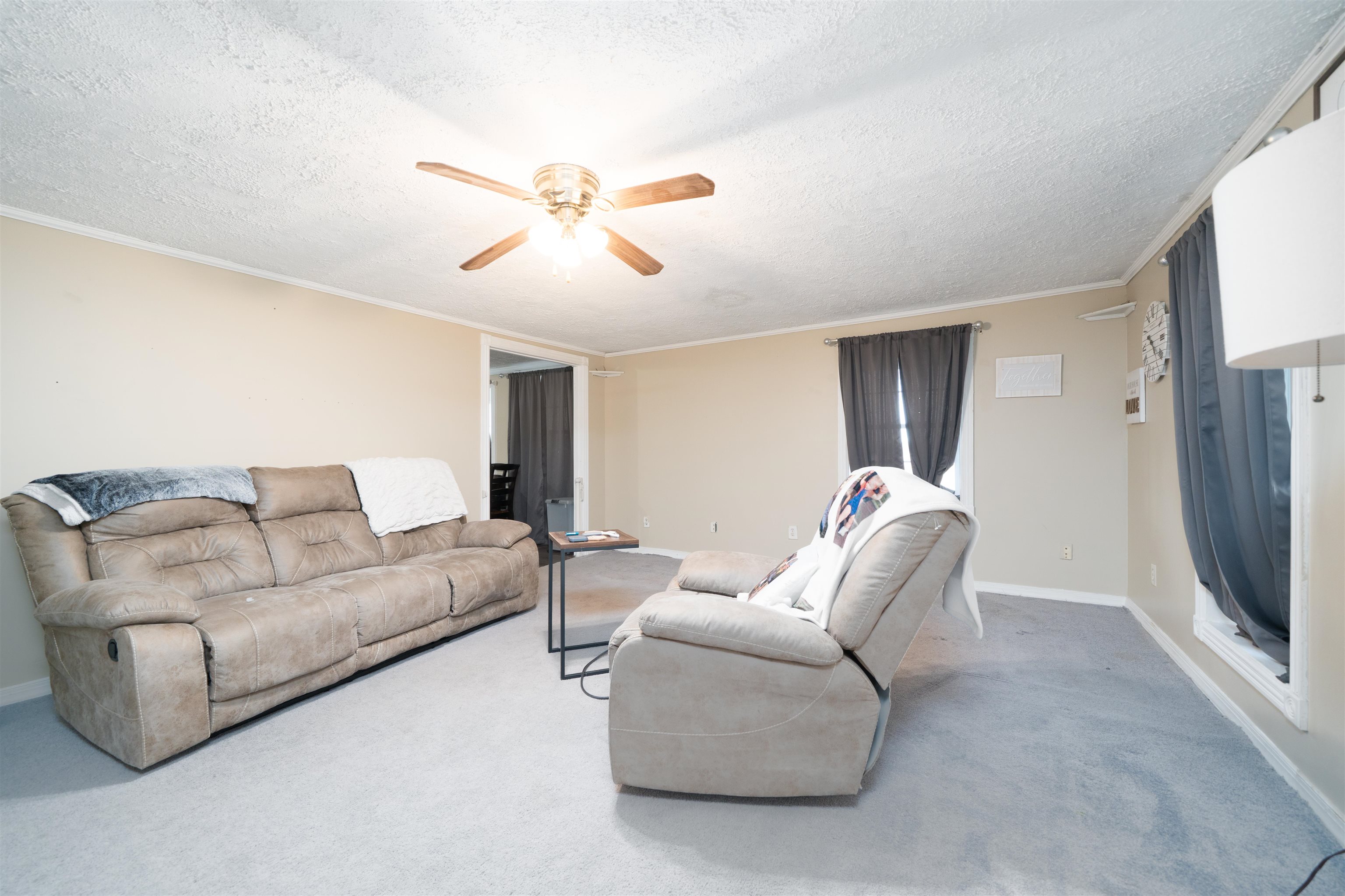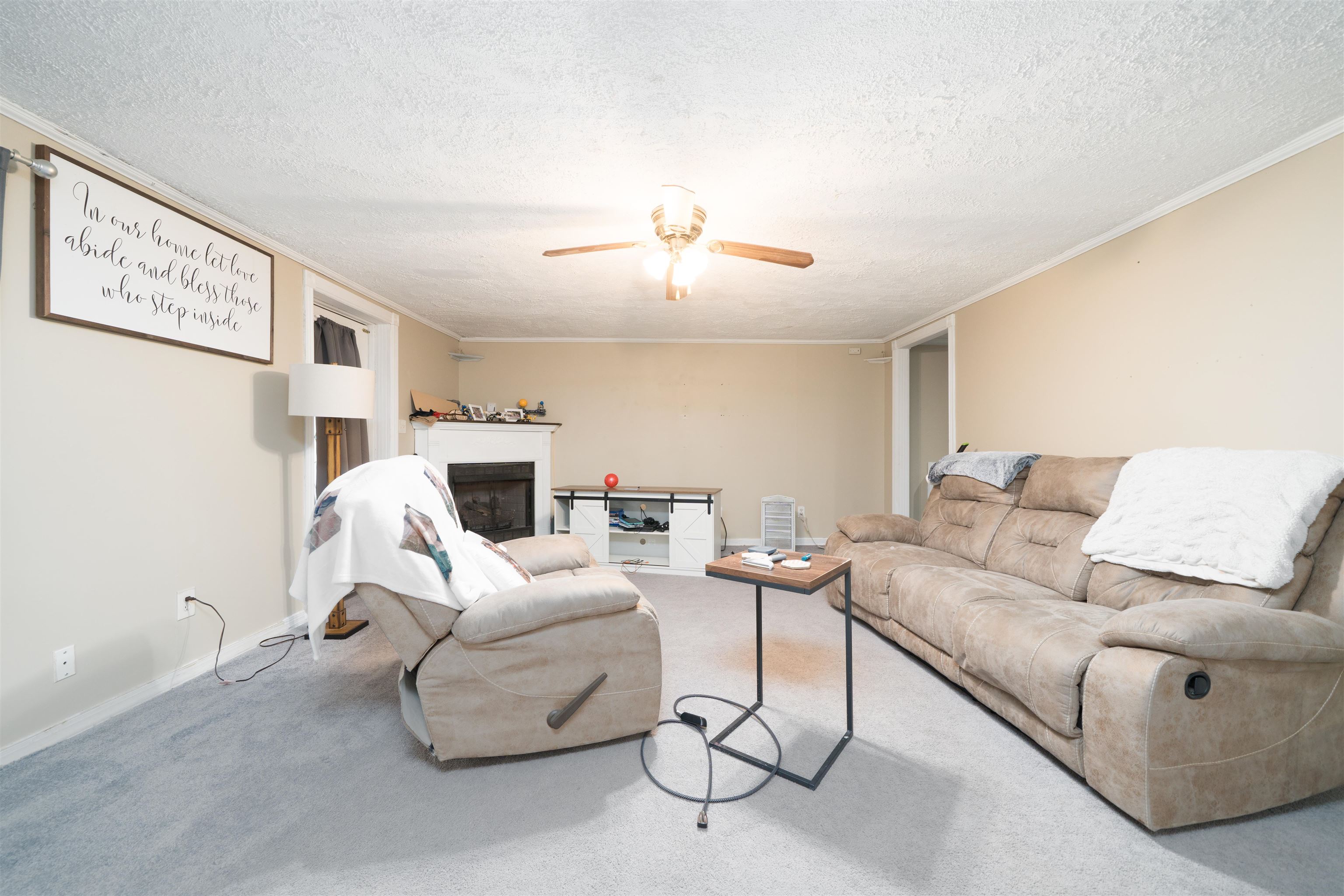 Welcome to this rare 3 bedroom, 2 bathroom barndominium on a peaceful 1 acre lot, where space, privacy, and opportunity come together. From the moment you arrive, you’ll appreciate the quiet setting and the feeling of room to breathe. Inside, attractive flooring throughout and a cozy electric fireplace create a warm, inviting atmosphere in the main living area that instantly feels like home. The kitchen flows effortlessly into the living space and features a generous pantry, making it both functional and ideal for everyday living or casual entertaining. The primary bedroom is a true standout, offering two walk-in closets, including an oversized walk-in, providing exceptional storage and organization. Additional bedrooms and bathrooms offer flexible space to fit your lifestyle needs. Step outside and prepare to be impressed by the wrap-around deck, perfect for morning coffee, evening sunsets, or hosting friends while taking in the peaceful surroundings. The exterior truly elevates this property with an impressive 40x40 shop/garage plus an additional 10x24 section, offering endless possibilities for hobbies, storage, or workspace. With just a little TLC, this home offers incredible upside and the chance to create something truly special. Priced to sell quickly, homes offering this level of privacy, shop space, and potential don’t last long! Schedule your showing today before it’s gone.