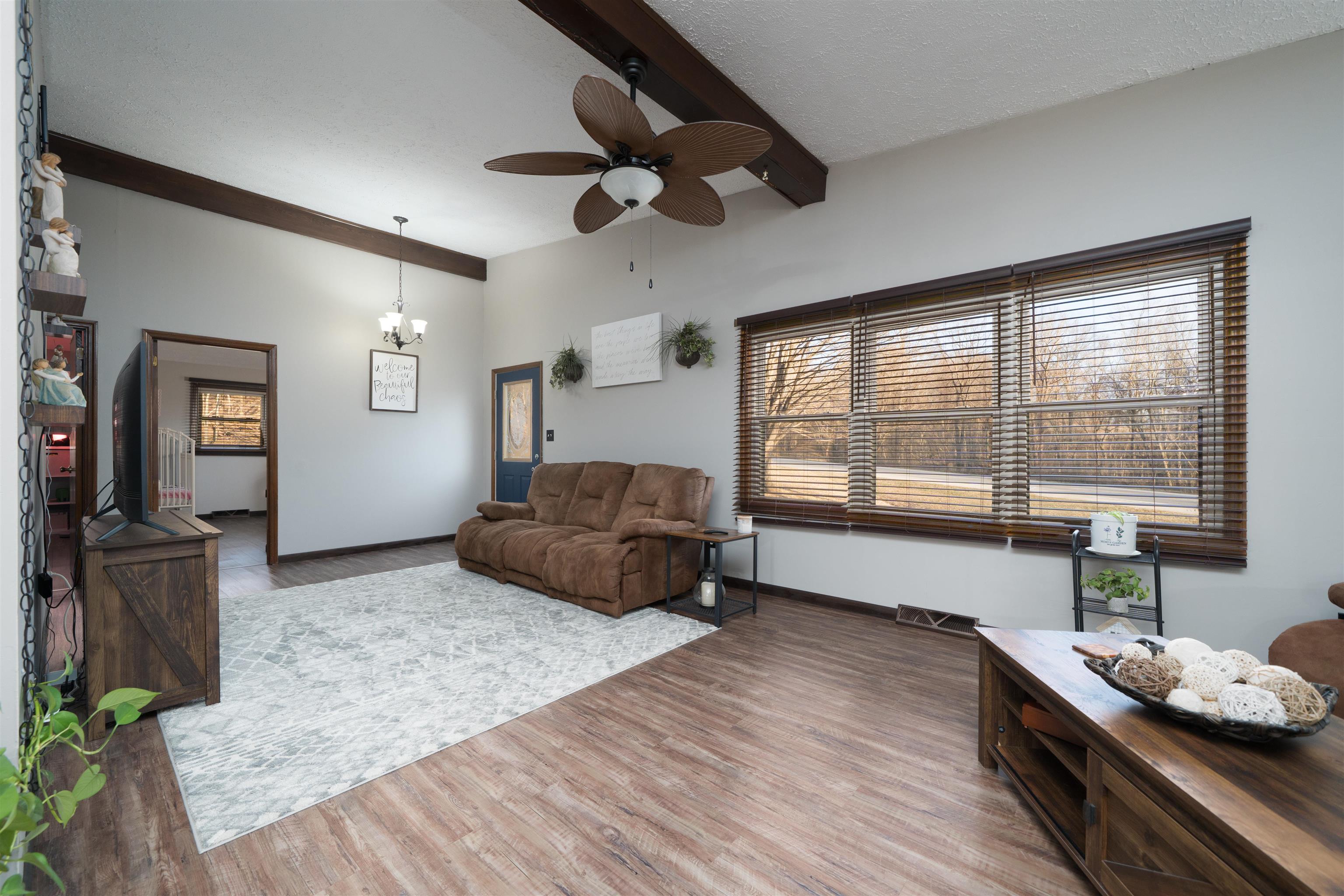 Discover peaceful country living in this spacious 4-bedroom, 2-bath home set on 0.87 acres. Thoughtfully designed, the home features a private master suite, a dedicated dining room, and soaring vaulted ceilings that create an open, airy feel. The partial basement offers additional storage or flexible space, while the detached shop is perfect for hobbies, projects, or extra equipment. With plenty of room to spread out both inside and out, this property blends comfort, functionality, and rural charm?ideal for those seeking space, privacy, and a place to truly make home.