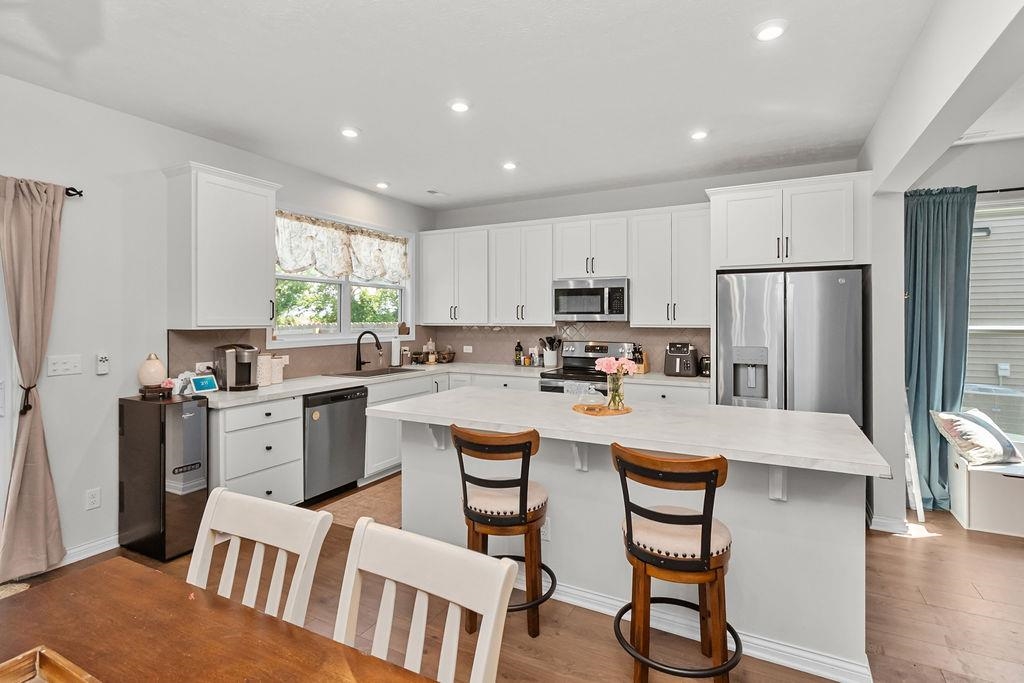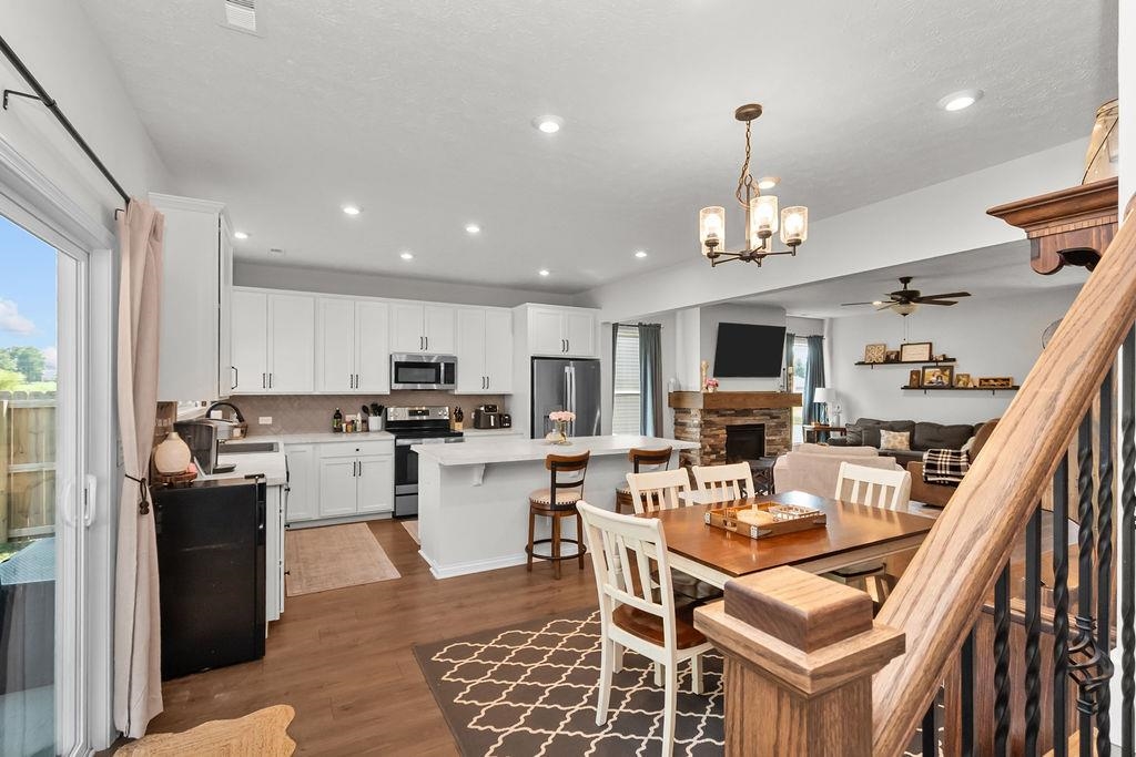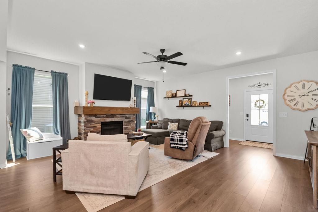 Wowza! Look at this new price for a 2024 build in Pebble Wood. Main Floor Master + other upgrades. Don't miss this opportunity! This newer build 2024 home offers the ease of like-new construction without the wait. Upgraded and move-in ready, this property gives you all the benefits of a recent build plus the convenience of amenities already in place. The open-concept layout features 4 bedrooms, 2.5 bathrooms, and over 2,600 square feet, including a first-floor primary suite. A gas fireplace, tile backsplash, and LED lighting throughout add style and efficiency, while smart details like the garage bump-out and attic storage access from inside give you the extra room you need. Outside, you’ll find a huge, level backyard with a brand-new privacy fence, dual gates, and an extended patio perfect for entertaining. Extra exterior outlets make holiday decorating or outdoor fun a breeze, plus a storage shed. Built with Jagoe’s energy-efficient features, this home offers lower utility costs and less maintenance, so you can simply move in and enjoy. Skip the building process, skip the delays; this home is ready for its new owner today!