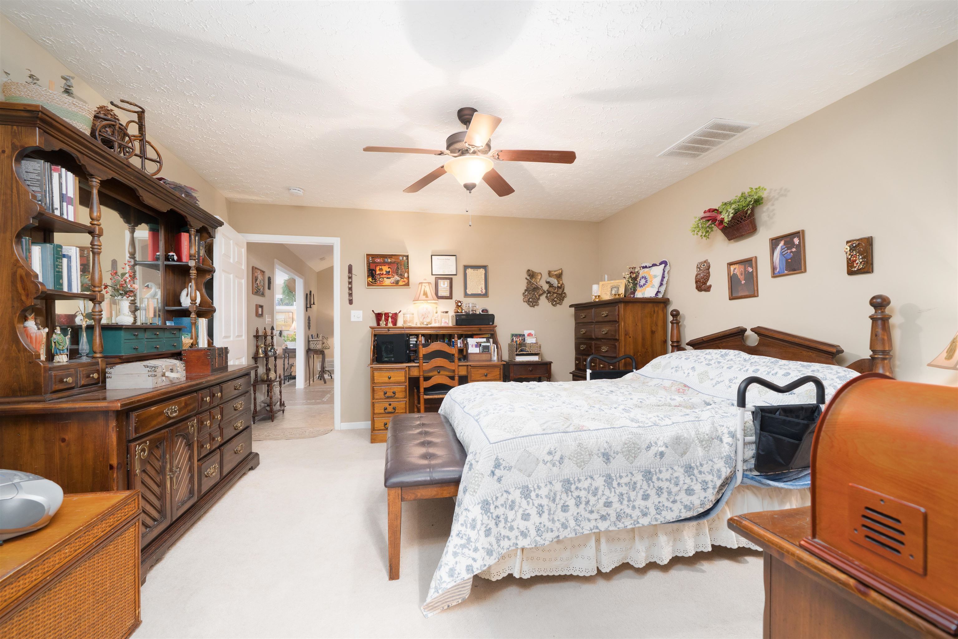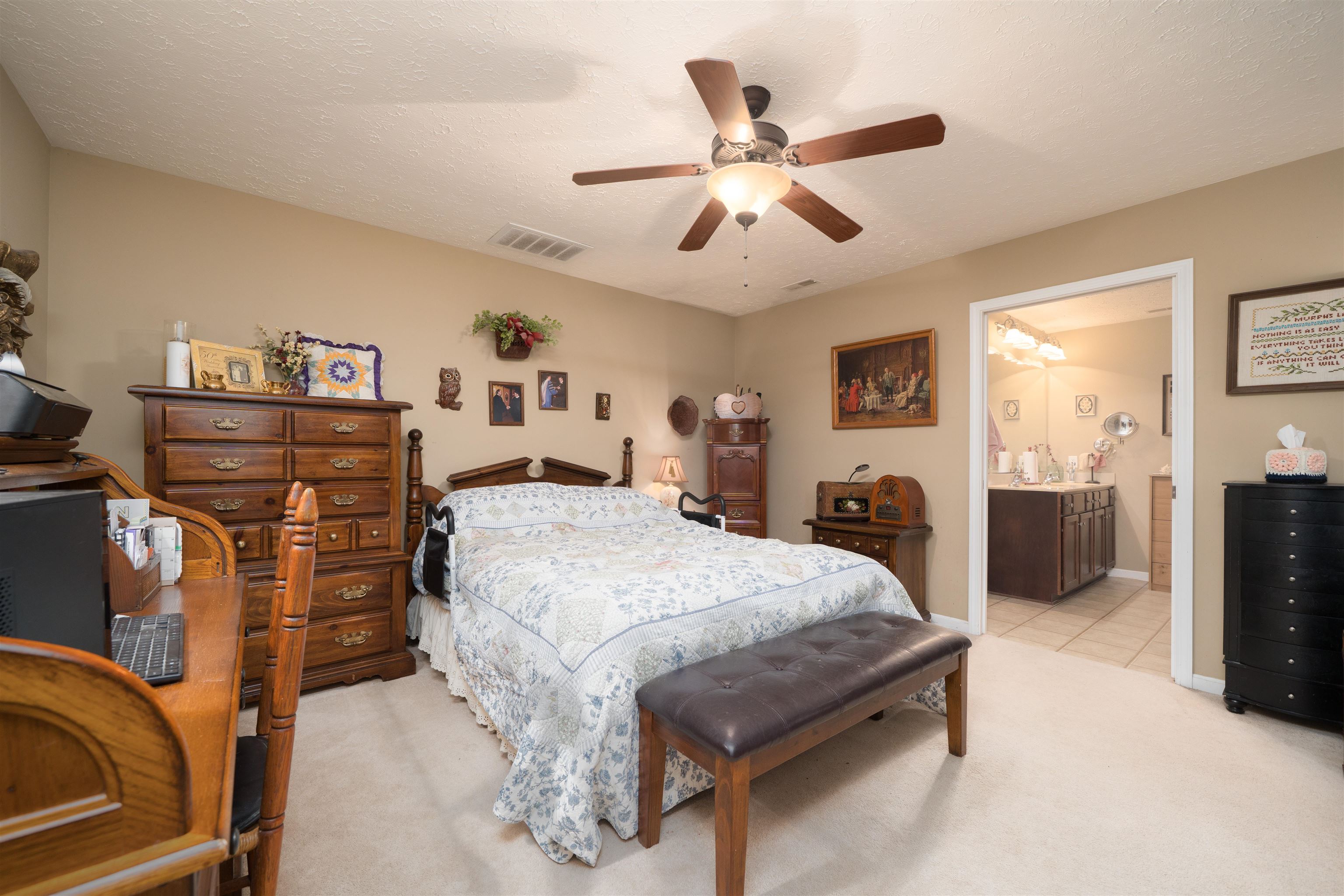 Well maintained brick home offering comfortable one level living in an established neighborhood. The functional floor plan features large open living spaces, ideal for everyday as well as entertaining. The huge windows fill the living room which flows into the dining area, while the kitchen offers abundant cabinetry, generous counter space, and a central island. The spacious primary bedroom includes a private en suite bath and ample storage. Additional bedrooms are nicely sized for a family, guests, a home office, or hobbies. Neutral finishes throughout create a warm, move-in-ready feel and an attached two-car garage adds convenience. Classic brick construction, thoughtful layout, and single-level living make this home a solid choice with comfort and long-term livability. Convenient to shopping, dining, and daily amenities.