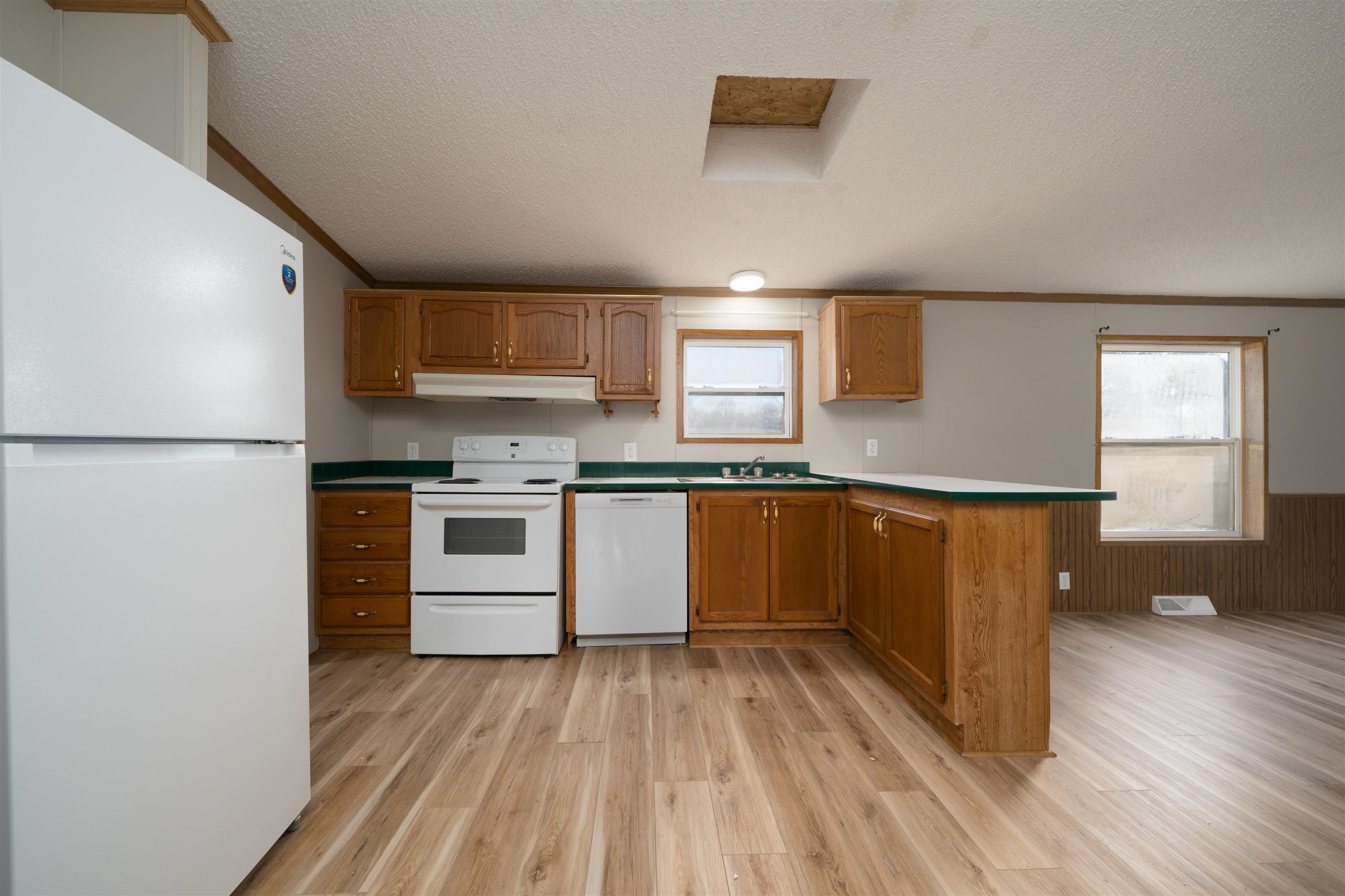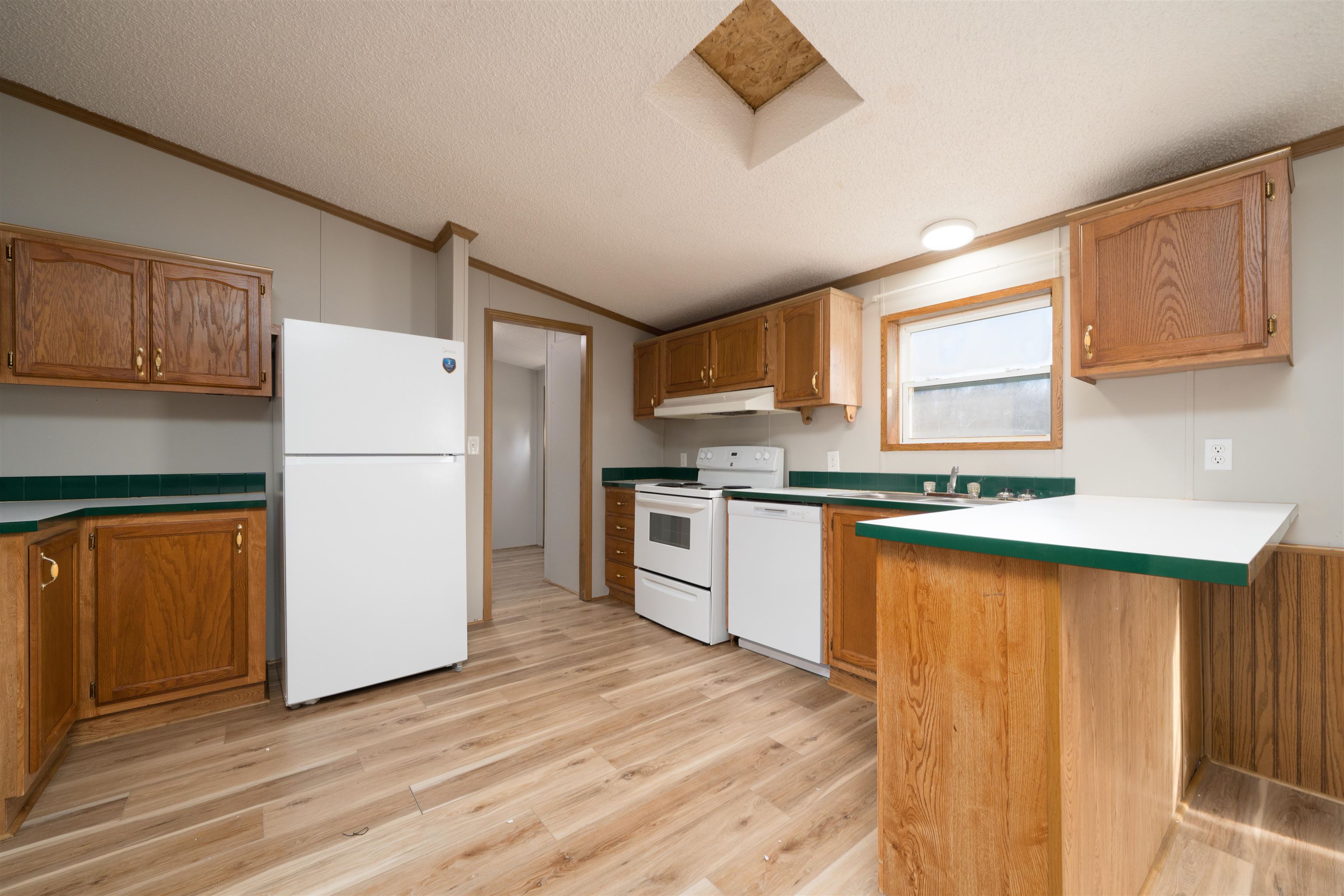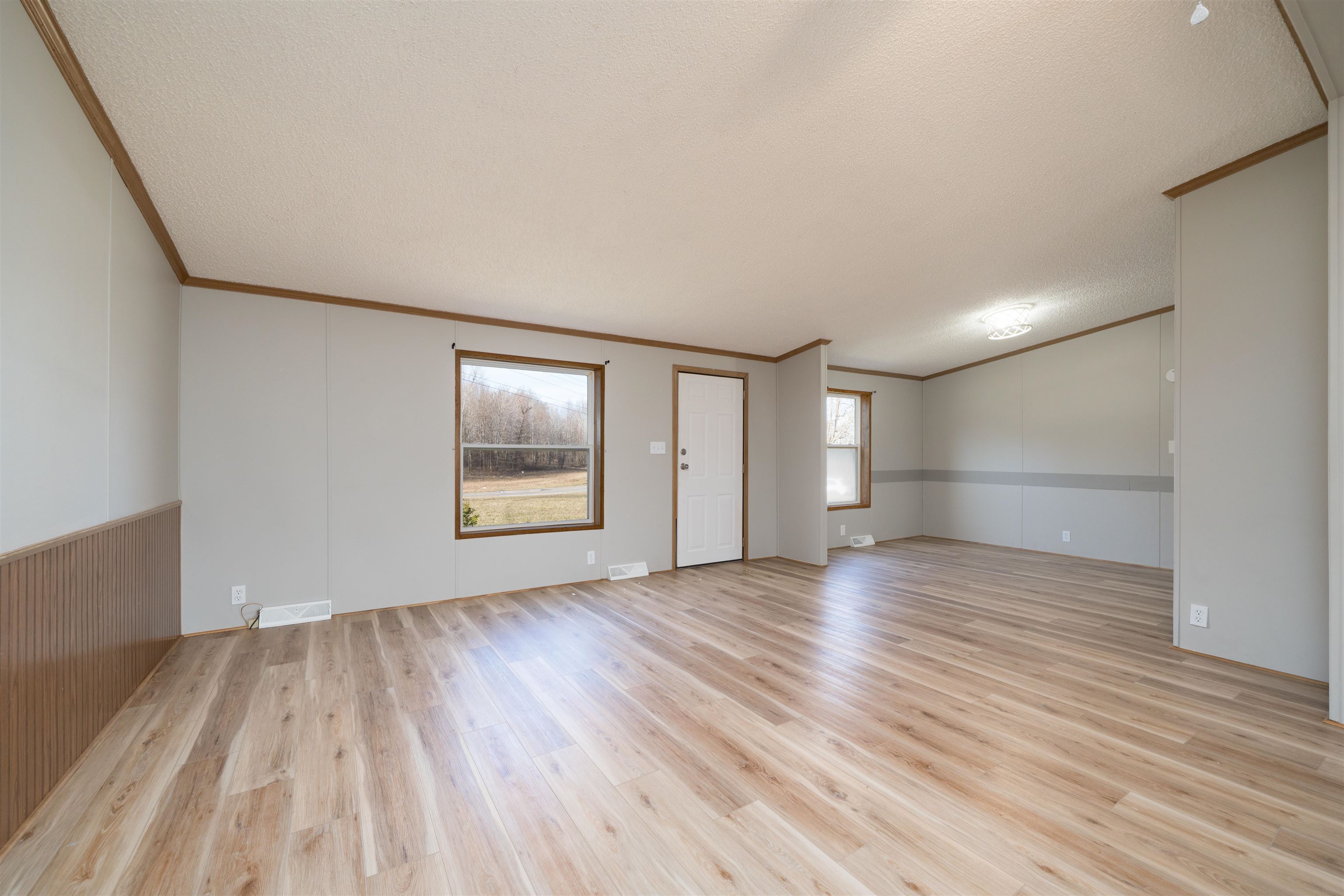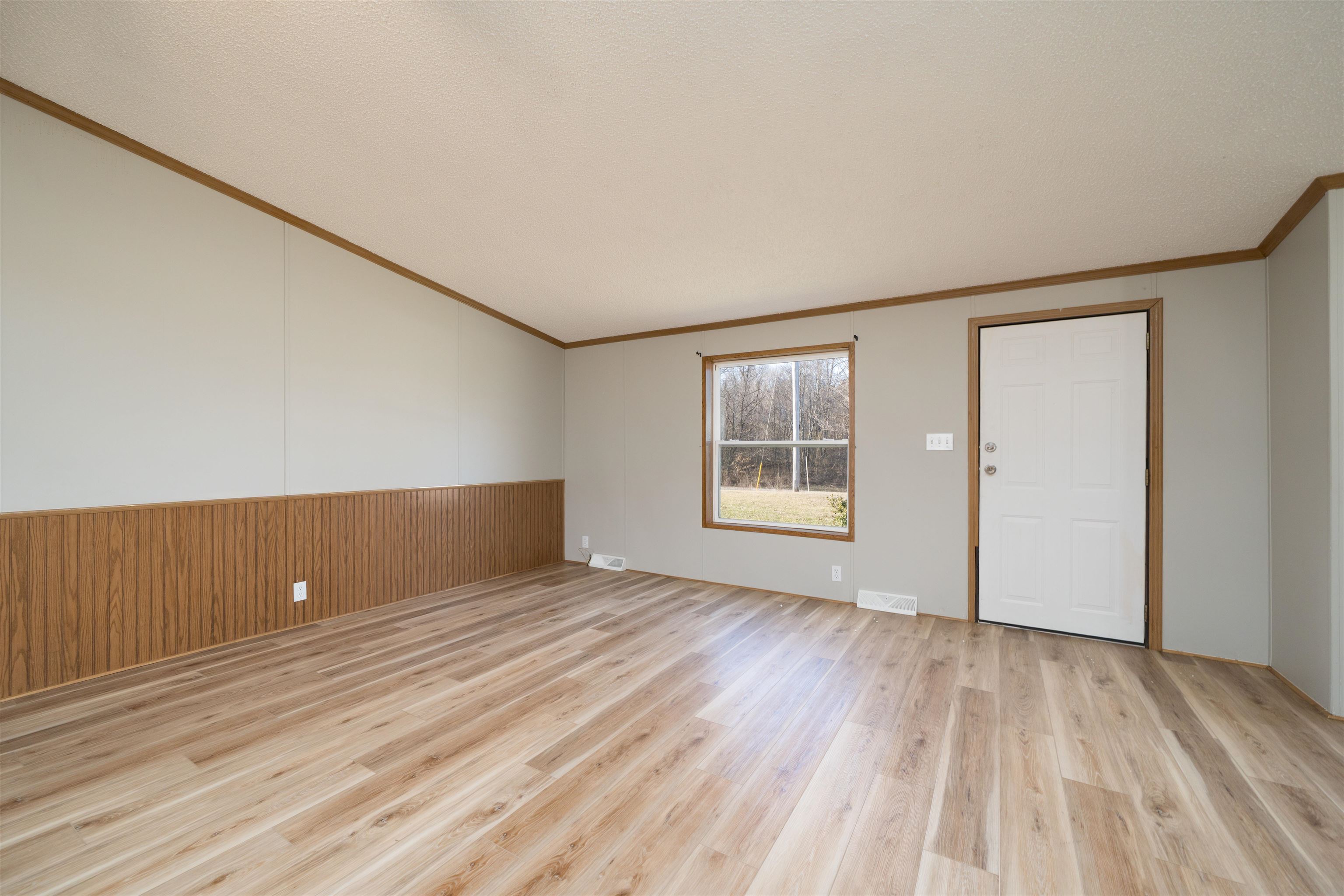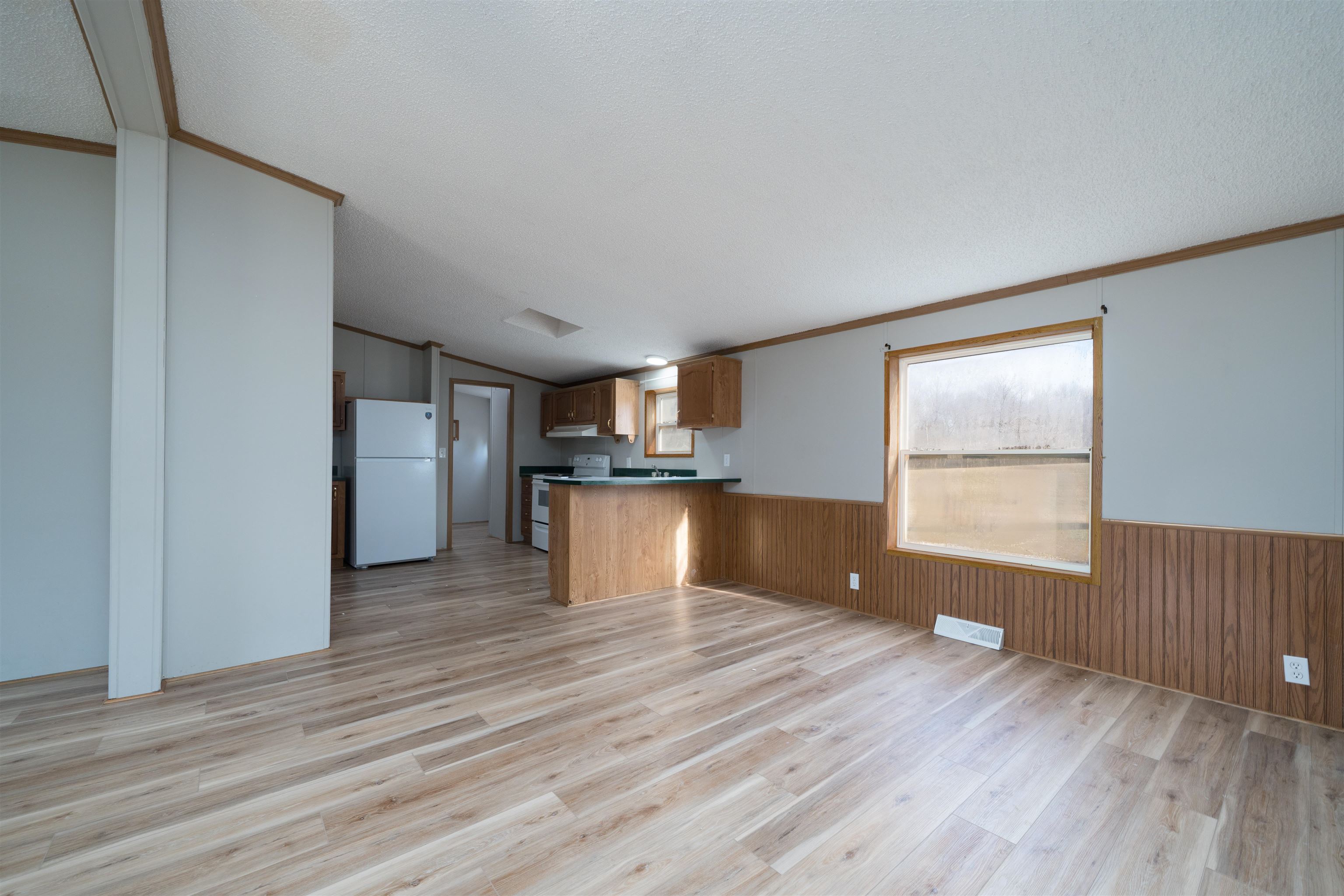 Well-maintained 3 bedroom, 2 bath home on .769 acres offering approximately 1,500 sq ft of living space. Open-concept layout with two living areas and a separate dining room, providing great flexibility for everyday living and entertaining. Laminate flooring throughout much of the home. Enjoy beautiful views from the spacious back deck. Additional features include a storage building, convenient location, and septic pumped in 2025. Vacant and move-in ready.