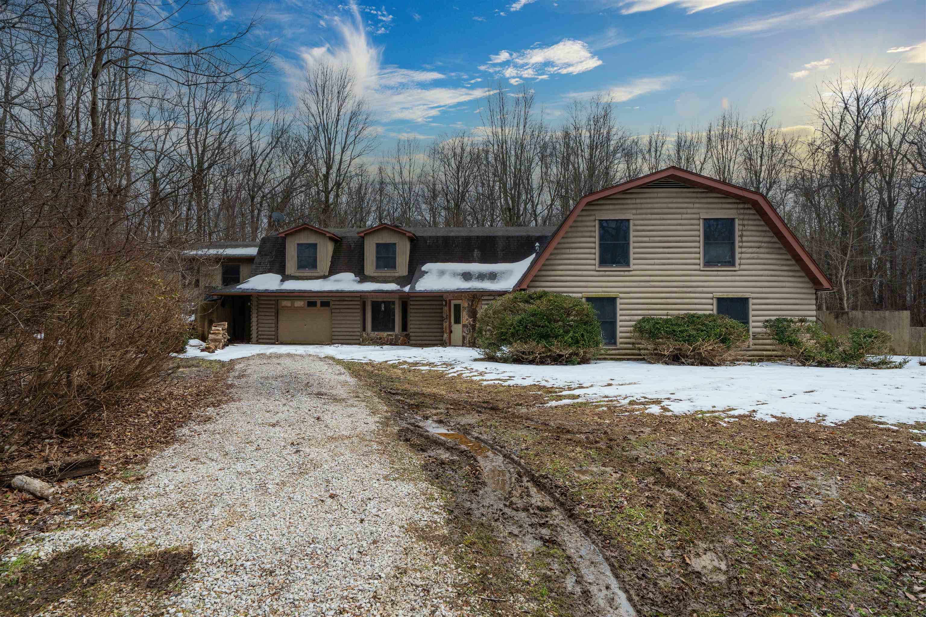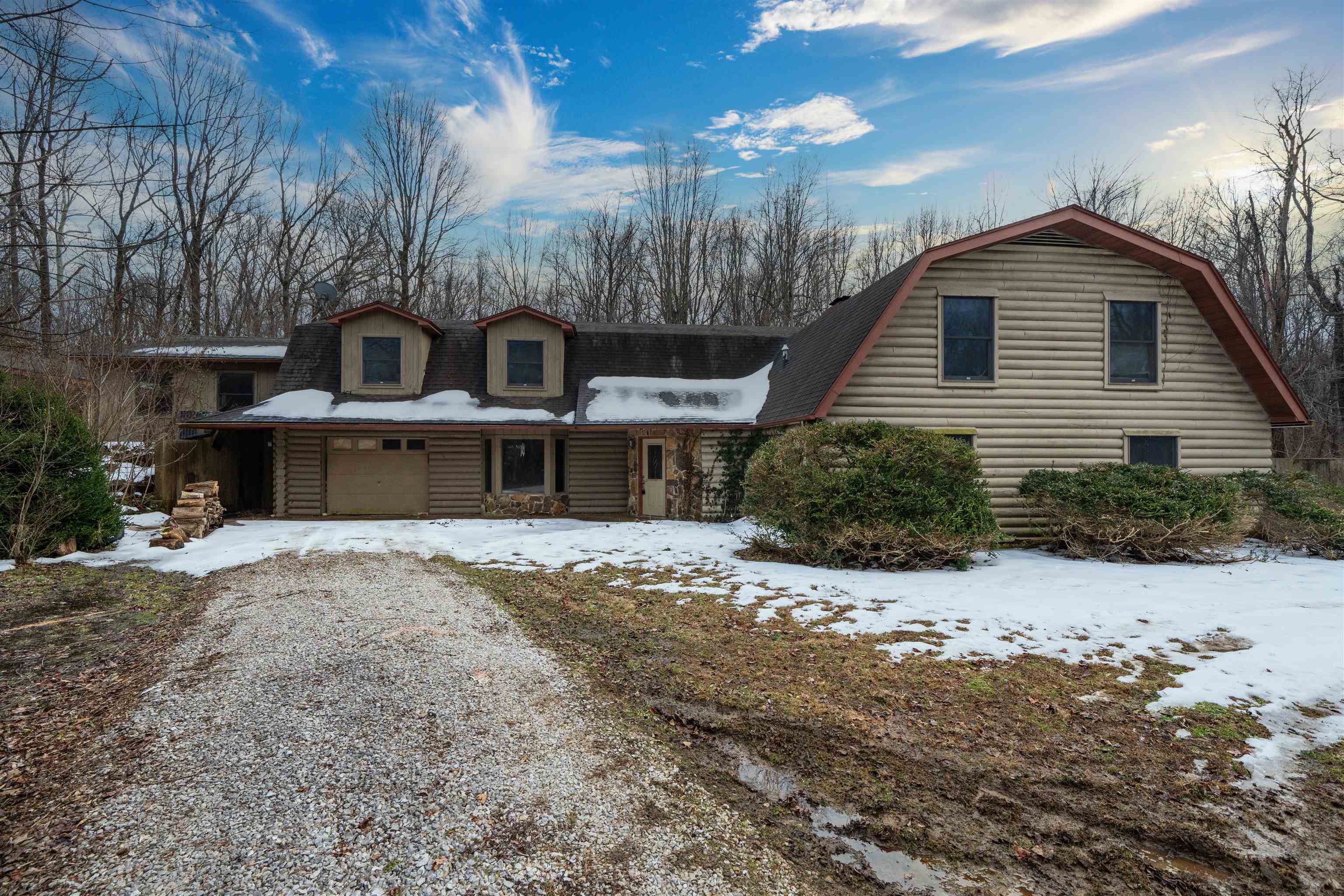 A Rare Berm-Style Log Home on 4.8 Secluded Acres — A One-of-a-Kind Owensboro Gem Tucked deep within a private, wooded 4.8-acre setting, this extraordinary 4,247-sq-ft berm-style log home offers a level of character and charm you simply won’t find anywhere else. With its enchanting aesthetic and expansive interior spaces, the property blends rustic warmth with whimsical, storybook appeal. The home features 5 spacious bedrooms, 2.5 baths, and room to add even more bedrooms or bathrooms thanks to its generous layout. Each bedroom is impressively sized, complete with large walk-in closets, making the home ideal for a growing household or anyone craving abundant space. Two fireplaces and a wood-burning stove anchor the living area and bedroom with cozy, cabin-like ambiance. The kitchen, gathering space, and flexible rooms offer endless potential for customization. Outside, the property is a nature lover’s dream. Surrounded by mature trees and wildlife, the setting feels worlds away while still being conveniently located near Owensboro amenities. The home includes two garage spaces, an indoor shop, and plenty of room for hobbies, storage, or creative projects. This property does need some TLC, but opportunities like this are exceptionally rare. With its distinctive architecture, secluded acreage, and massive interior footprint, this is a once-in-a-lifetime chance to own a home that truly stands apart. A magical retreat. A renovation opportunity. A property you won’t see again.