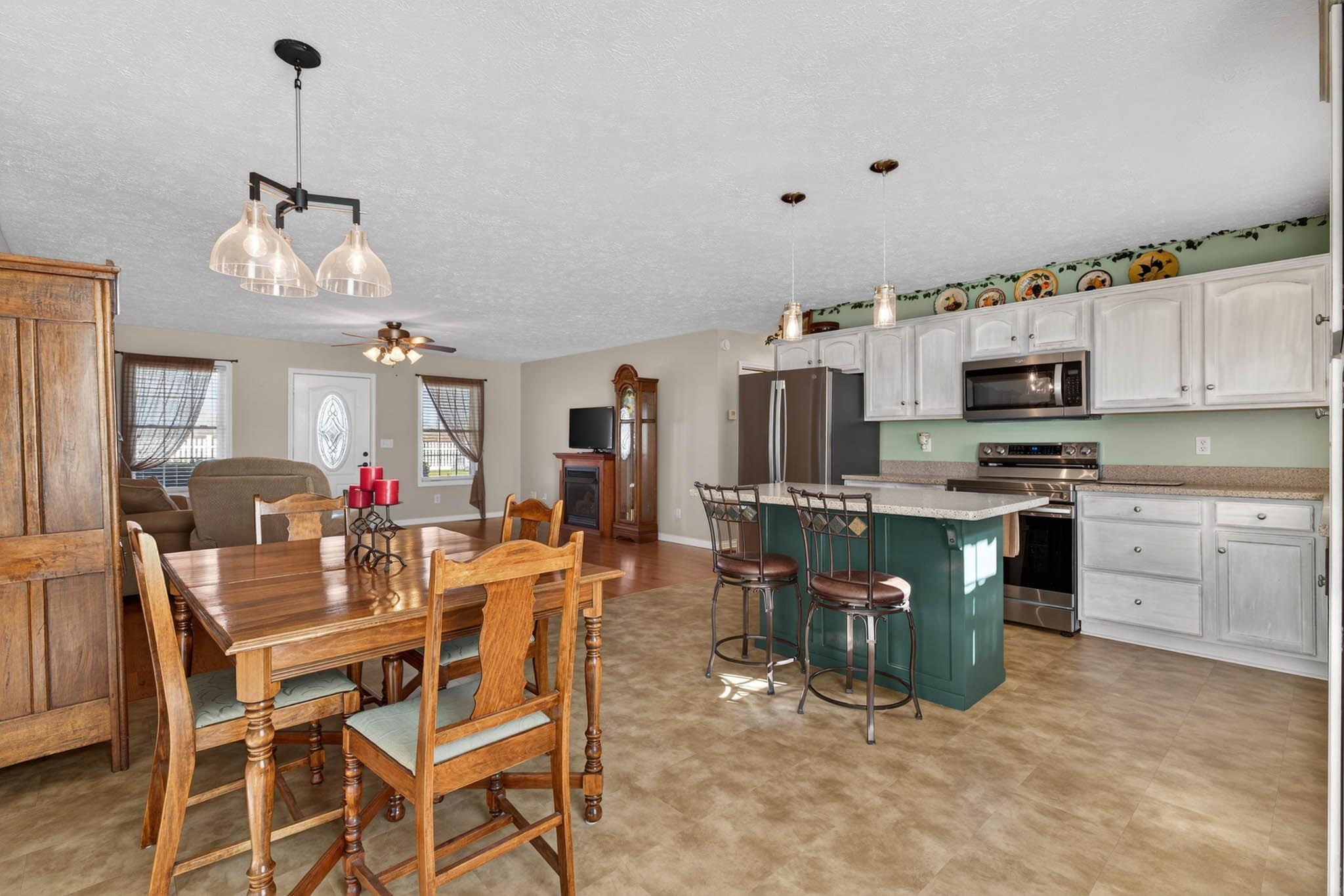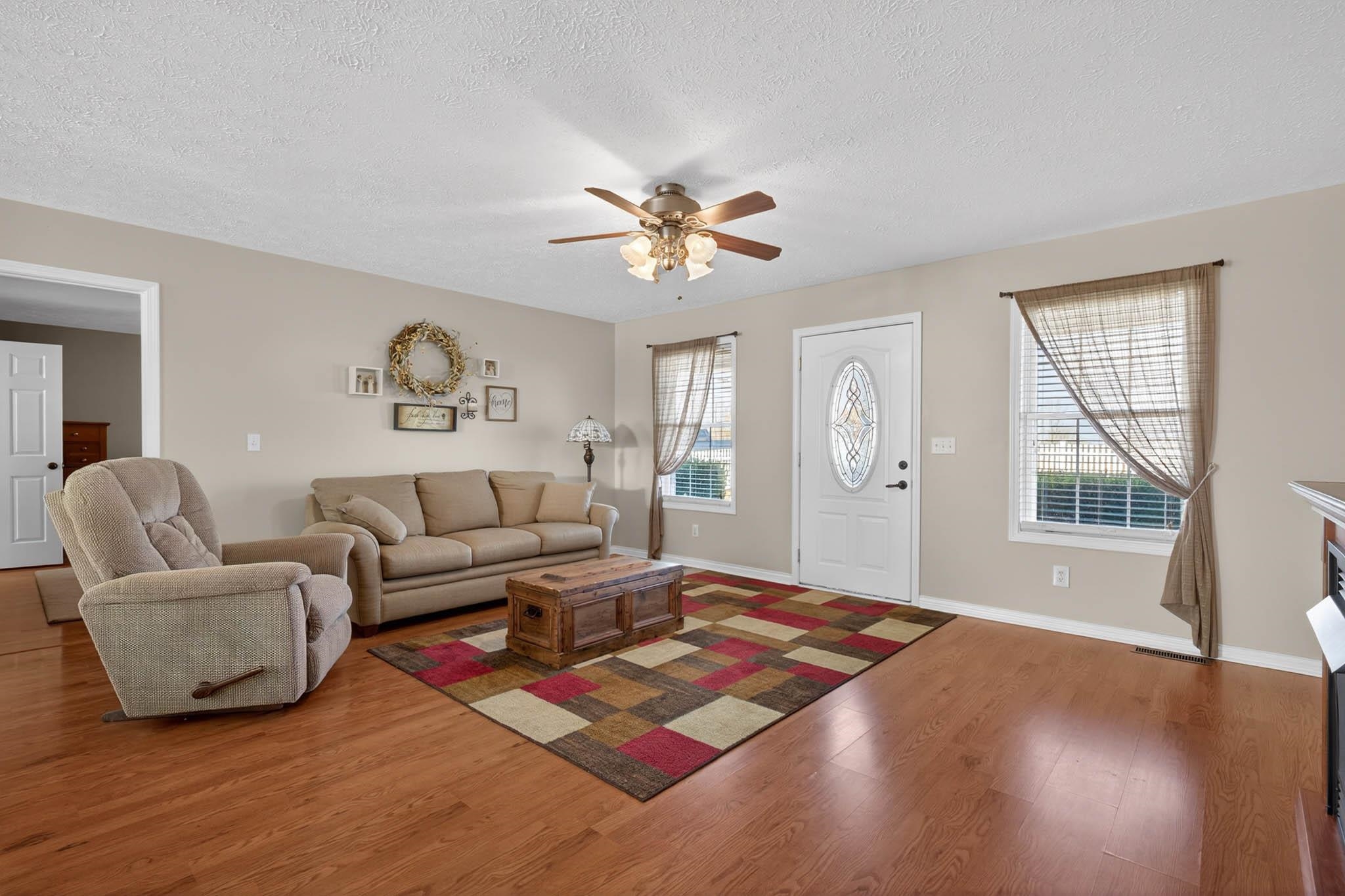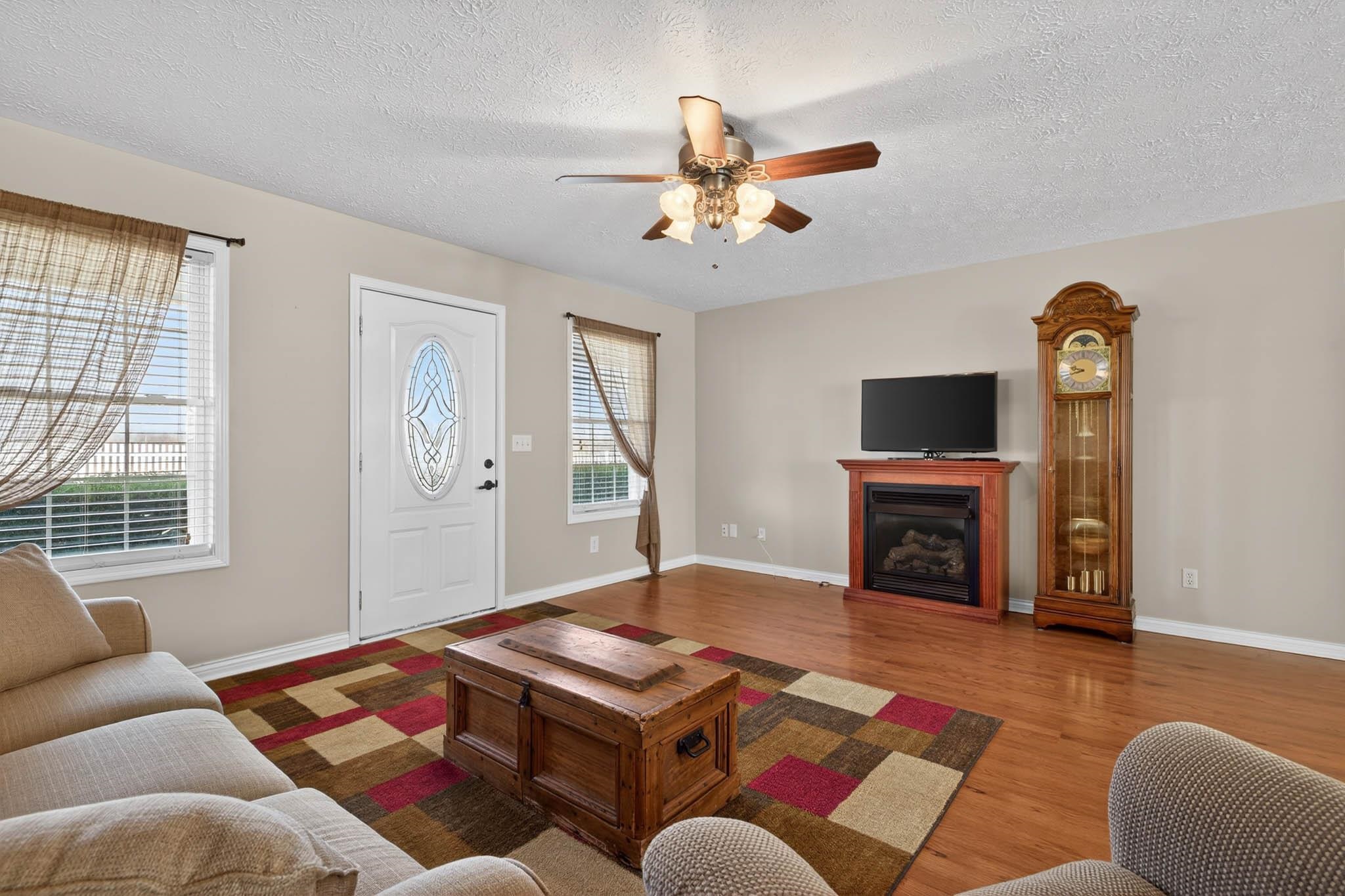 Fresh, clean, and move-in ready, this beautiful three-bedroom, two bath home in Breckinridge County sits on 1.04 peaceful acres, offering space, comfort, and modern convenience. Step inside to an open kitchen, dining, and family area filled with plenty of natural sunlight—creating a bright and welcoming atmosphere for everyday living and entertaining. The split-bedroom floor plan provides privacy, with a spacious primary suite featuring a relaxing jacuzzi tub and separate shower. Enjoy the outdoors from the full-length front porch overlooking the fenced front yard, or unwind on the back deck with plenty of room to spread out. The 24x32 two-car garage includes an additional storage, office, or hobby area along with a single-car lean-to for extra covered parking. Stay connected with reliable fiber-optic internet through Brandenburg Telephone Company. If you’re looking for a fresh, clean, well-maintained home with a little acreage and thoughtful features in a quiet country setting, this one is a must see!