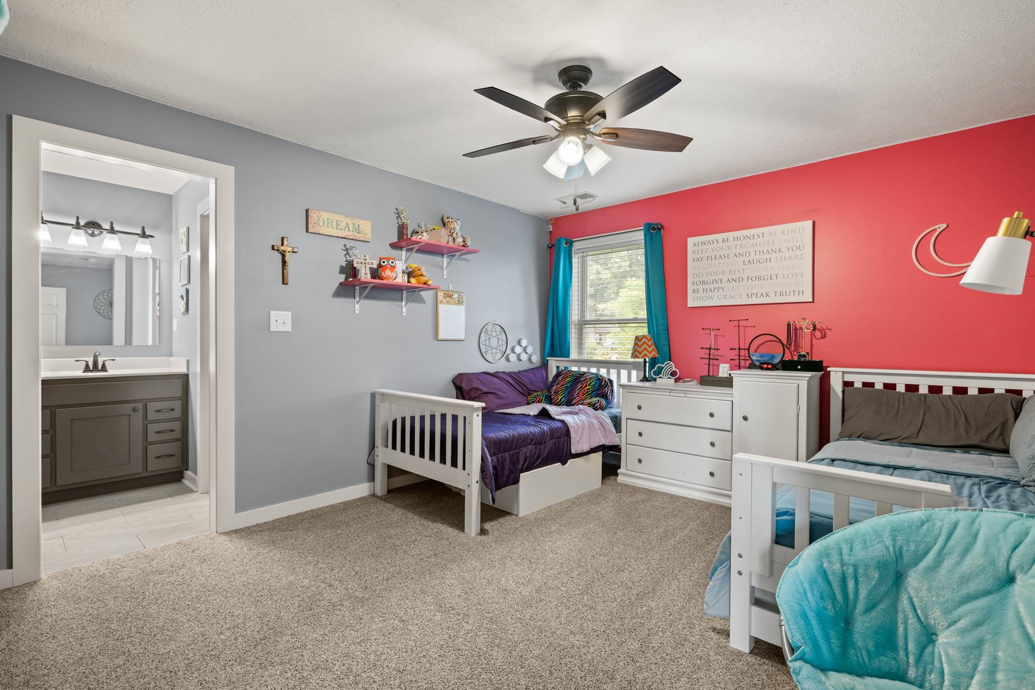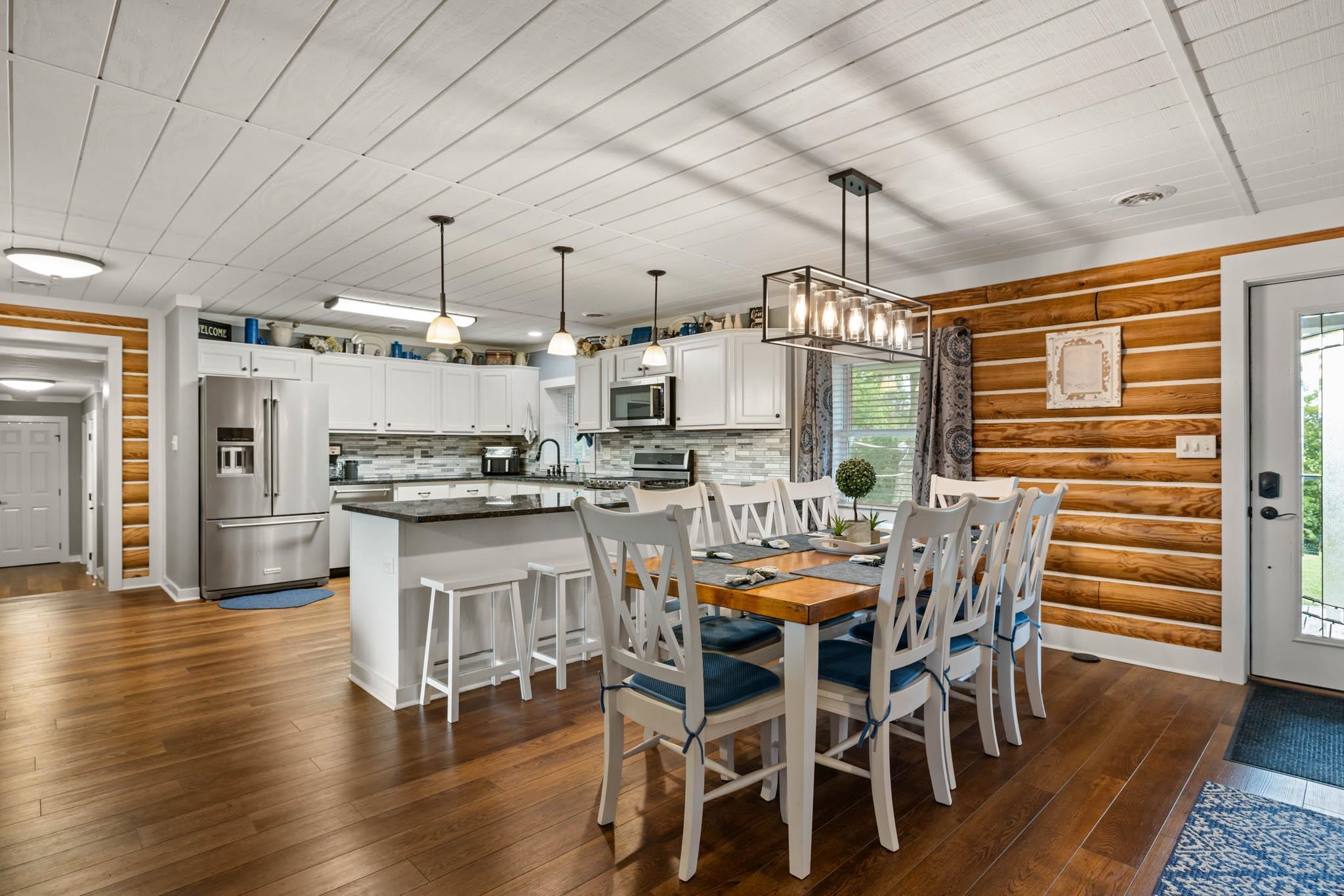 With all of the character and charm expected from a home in the countryside, this 3,100+ square foot, fully rebuilt 5-bedroom, 3-bath home was designed for people who value space, function, and long-term durability instead of cosmetic fluff. Originally a small 1980s log cabin, the home was completely gutted, expanded by an additional 1,500 square feet, and finished in 2019. And while charm is great, you’re also getting upgraded infrastructure, thoughtful layout, and peace of mind. The expensive, behind-the-walls work has already been handled. The home features new floor joists, blown-in insulation, drywall, paint, a 200-amp electrical panel, a tankless water heater, two newer furnaces, two newer air conditioners, and newer roof. A classic wood-burning stove adds both cozy ambiance and reliable emergency heat. Translation: the big-ticket items are done, and they’re done right. Inside, the layout is built for real life. The split floor plan and open-concept main living area create flow without sacrificing privacy. There are five spacious bedrooms and three full baths, with four bedrooms connecting directly to a full bathroom for convenience and functionality. You’ll also find a dedicated office, hobby, or gaming room, a massive upstairs bonus family room, generous walk-in closets, a walk-in attic, and a practical drop zone to keep everyday life organized. The flooring blends durability and comfort with luxury vinyl plank, ceramic tile, and plush carpet in the bedrooms and bonus space. The kitchen is where form meets function. With approximately 60 square feet of granite countertop space, a gas stove top and double electric oven, stainless Kitchen Aid appliances, and a pantry, it keeps the warmth of the original log cabin aesthetic while operating like a modern build. Whether you’re cooking for two or hosting a full house, the space works. Set on a peaceful one-acre lot, the outdoor environment reinforces the lifestyle this home was built for. Enjoy sunrise views from the front porch, evenings by the fire pit, and a large side yard with room for outdoor games, hobbies, or even a future shop. The two-car detached garage provides ample space for vehicles, storage, or projects. You get privacy without isolation and space without compromise. And here’s a detail smart buyers understand the value of: this home is 0.3 miles from the Daviess County line where the Daviess County Public School bus will drop off/pick up kids if you choose to transfer your kids into Daviess County Public Schools. This isn’t just a remodeled house. It’s a fully re-imagined property with space, systems, and flexibility already in place. If you’re looking for something merely pretty, think bigger. If you’re looking for something durable, functional, and built to support the next chapter of your life, this is the move. Even better, this is your opportunity to love where you live!
