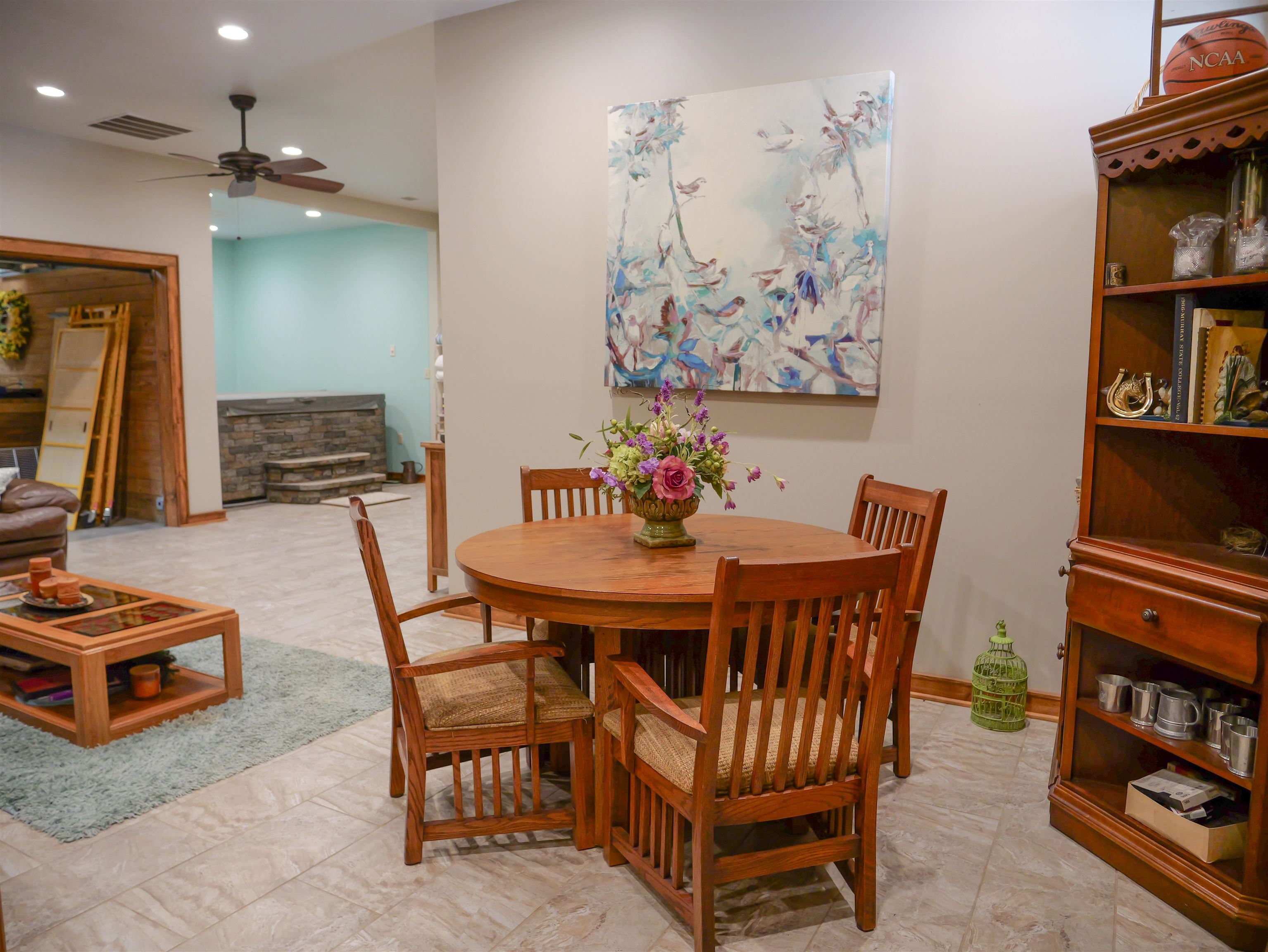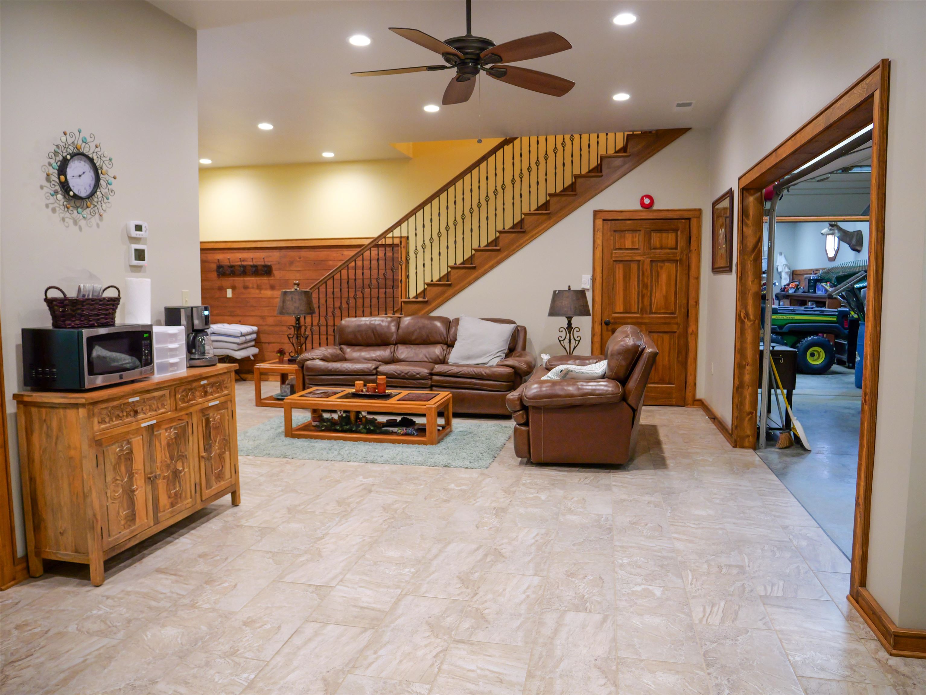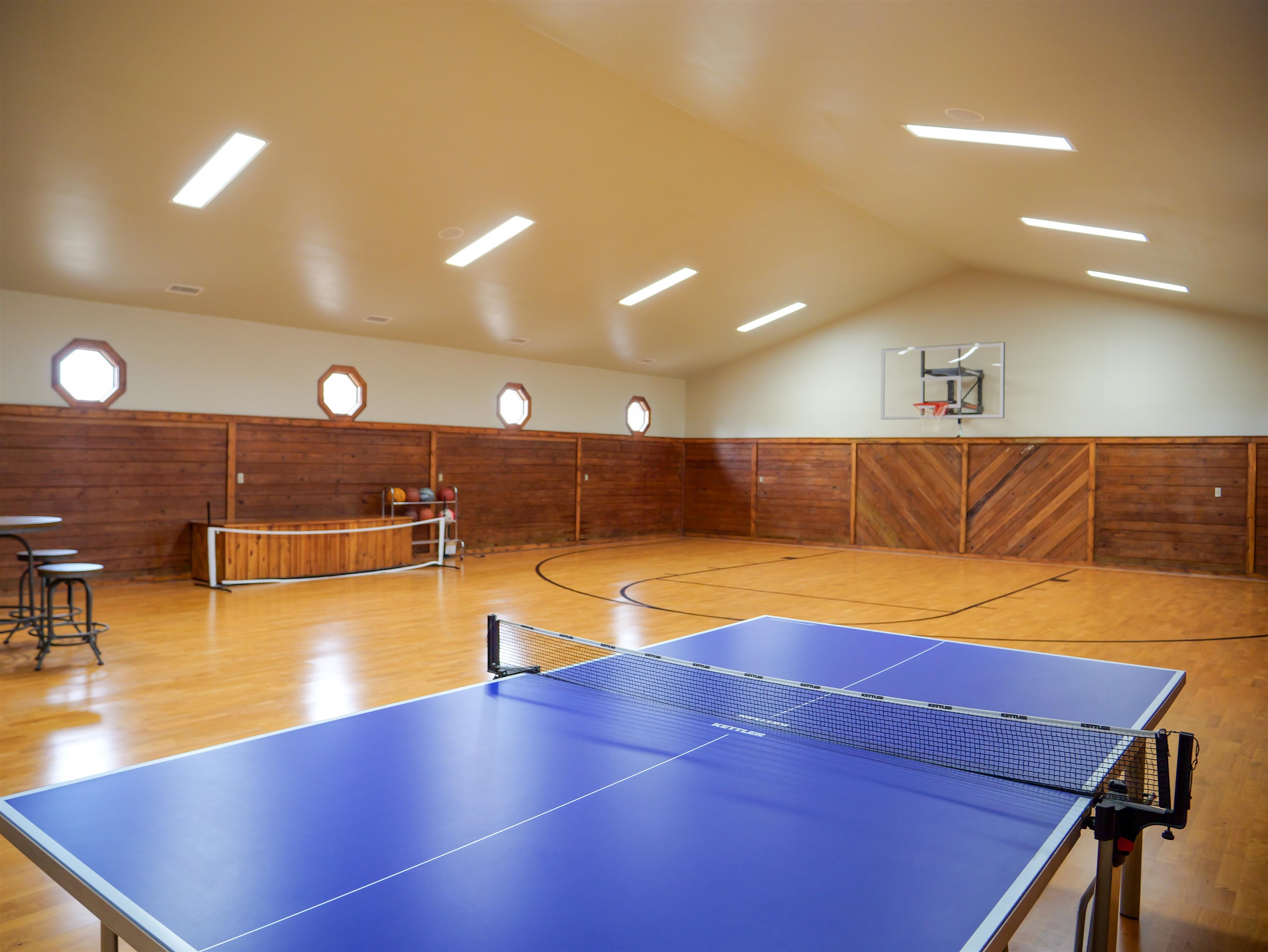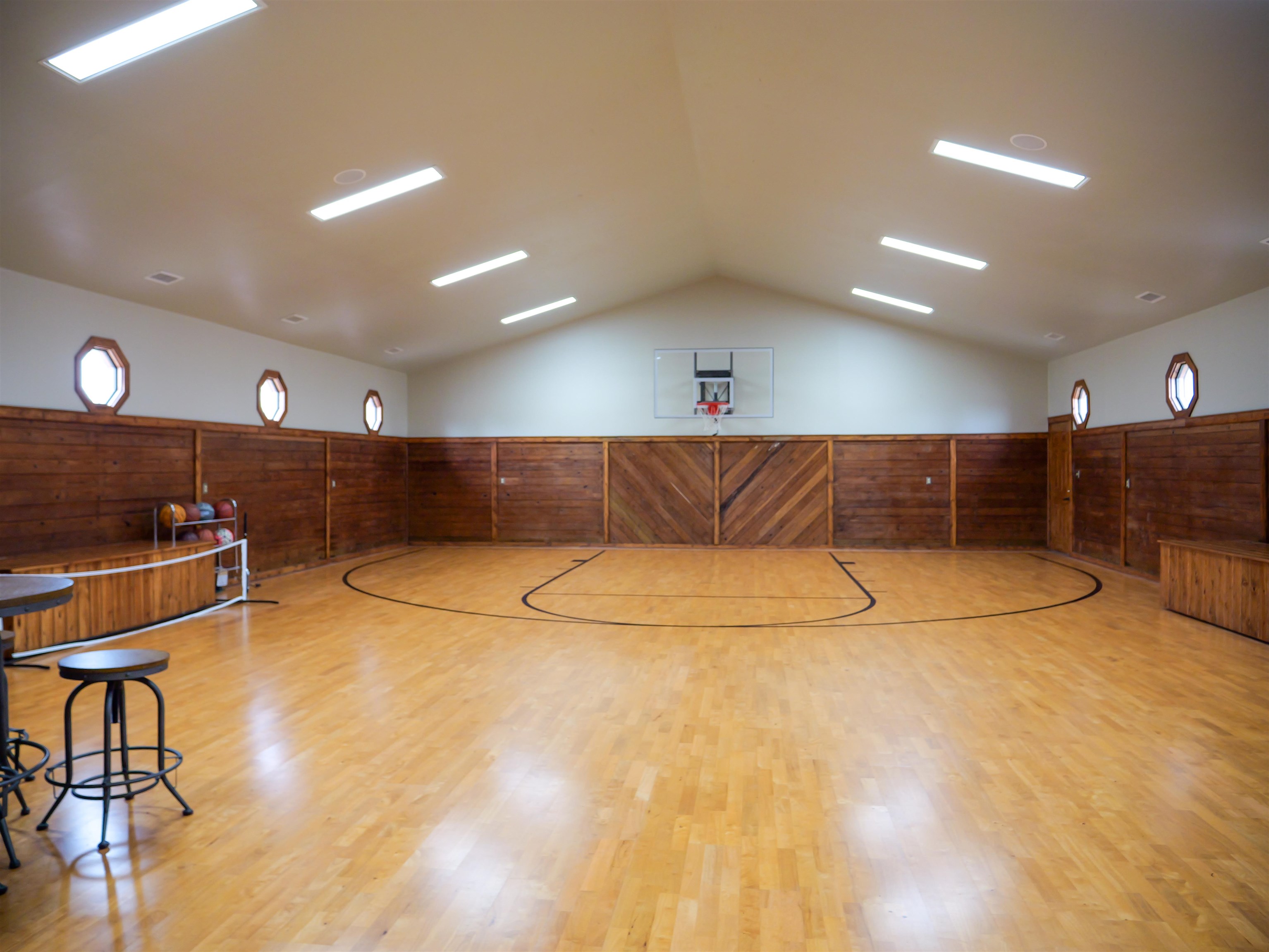 A true private luxury retreat set on nearly 8 fully fenced acres, this custom built estate delivers scale, craftsmanship, and resort level amenities rarely found in one property. With over 4,000 square feet in the main residence and more than 3,000 square feet of finished ancillary living space, this is not simply a home. It is a destination. The main residence was thoughtfully designed with an open, flowing floor plan that feels grand yet inviting. Multiple expansive living spaces and generous dining areas create effortless flow for entertaining, while two fireplaces anchor the home with warmth and architectural presence. A stunning sun room captures panoramic views of the lake and fountain, offering a peaceful setting that feels like a private resort. The finished basement adds even more versatility for recreation, media space, or extended living. Every window frames the beauty of the property. Water views, rolling acreage, and open skies become part of your everyday experience. The ancillary building elevates this estate into a category of its own. Spanning over 3,000 square feet of finished living space, it includes nearly 1,800 square feet dedicated to a full scale indoor basketball and pickleball court. Beyond the court, you will find a private wellness retreat featuring a jacuzzi and full bath with steam shower, two spacious living rooms, and an additional second floor half bath and wet bar. Whether hosting unforgettable gatherings, creating a private training facility, or accommodating guests in style, this space delivers unmatched flexibility and impact. The nearly 8 fenced acres offer ideal conditions for horses, hobby farming, or simply enjoying wide open privacy. A picturesque lake with fountain serves as the centerpiece of the grounds, providing breathtaking views and a tranquil backdrop year round. An additional workshop adds function for projects, storage, or equipment. Infrastructure meets luxury with whole home generators servicing both buildings, natural gas, new geothermal systems, new roofing, and a 500 gallon fuel tank, offering efficiency, security, and peace of mind. This is a rare opportunity to own an estate that combines custom design, recreational excellence, and resort style living, all wrapped in privacy and panoramic waterfront views.