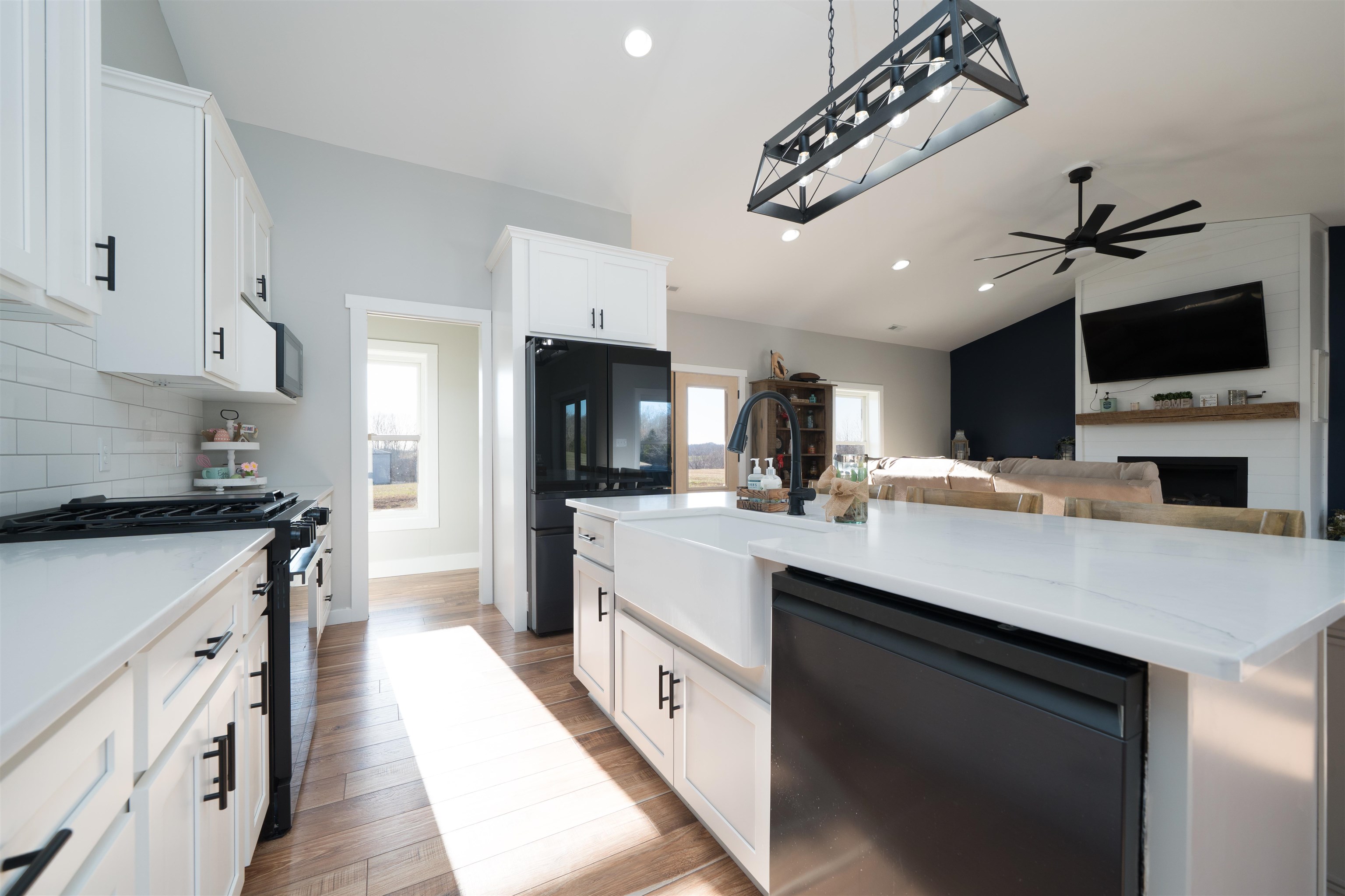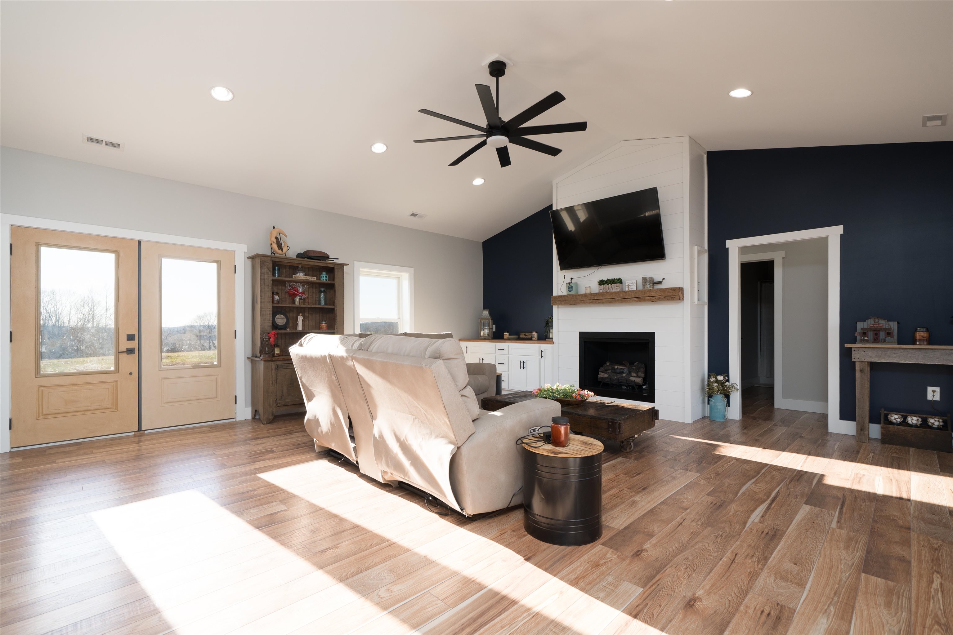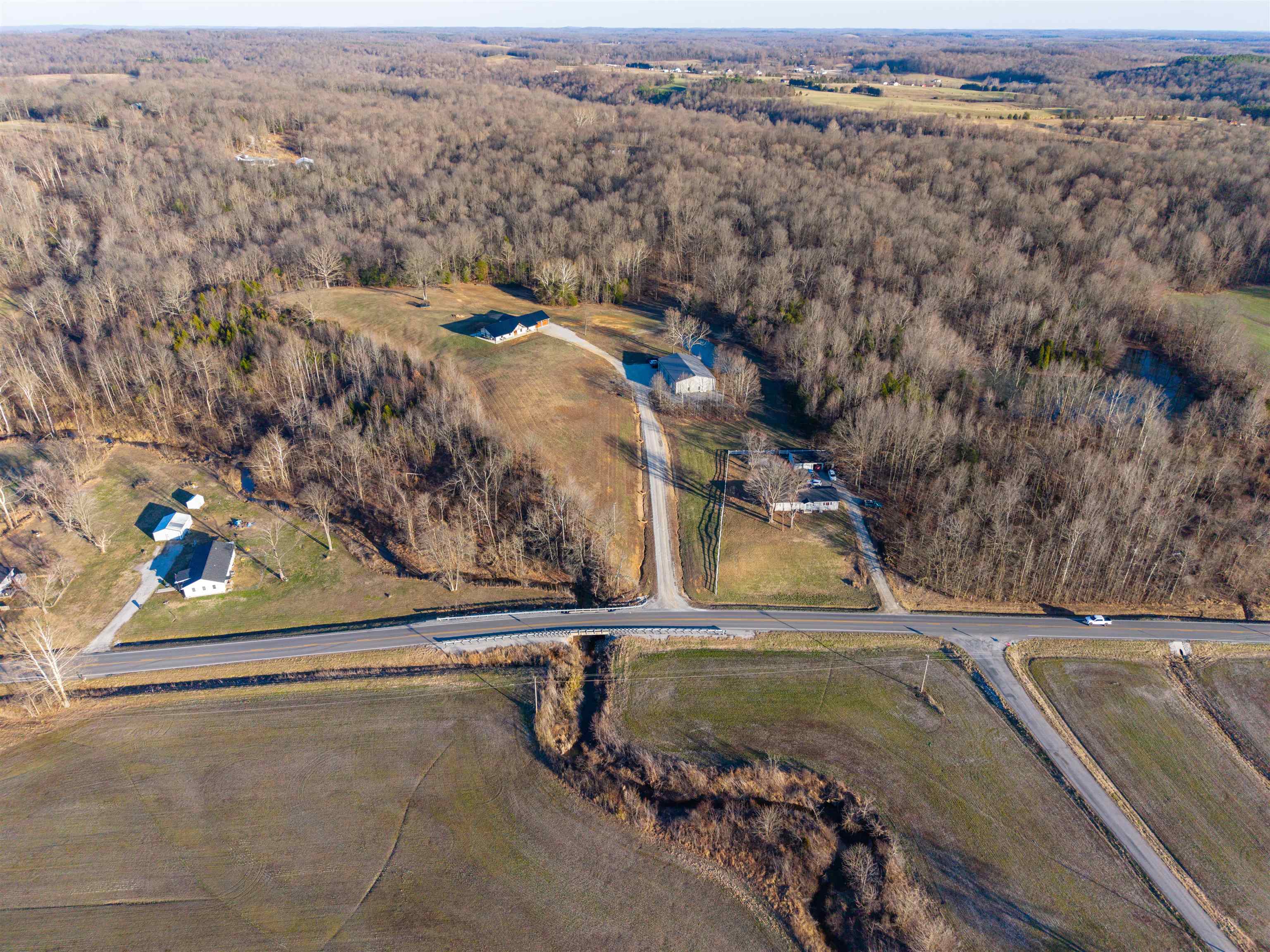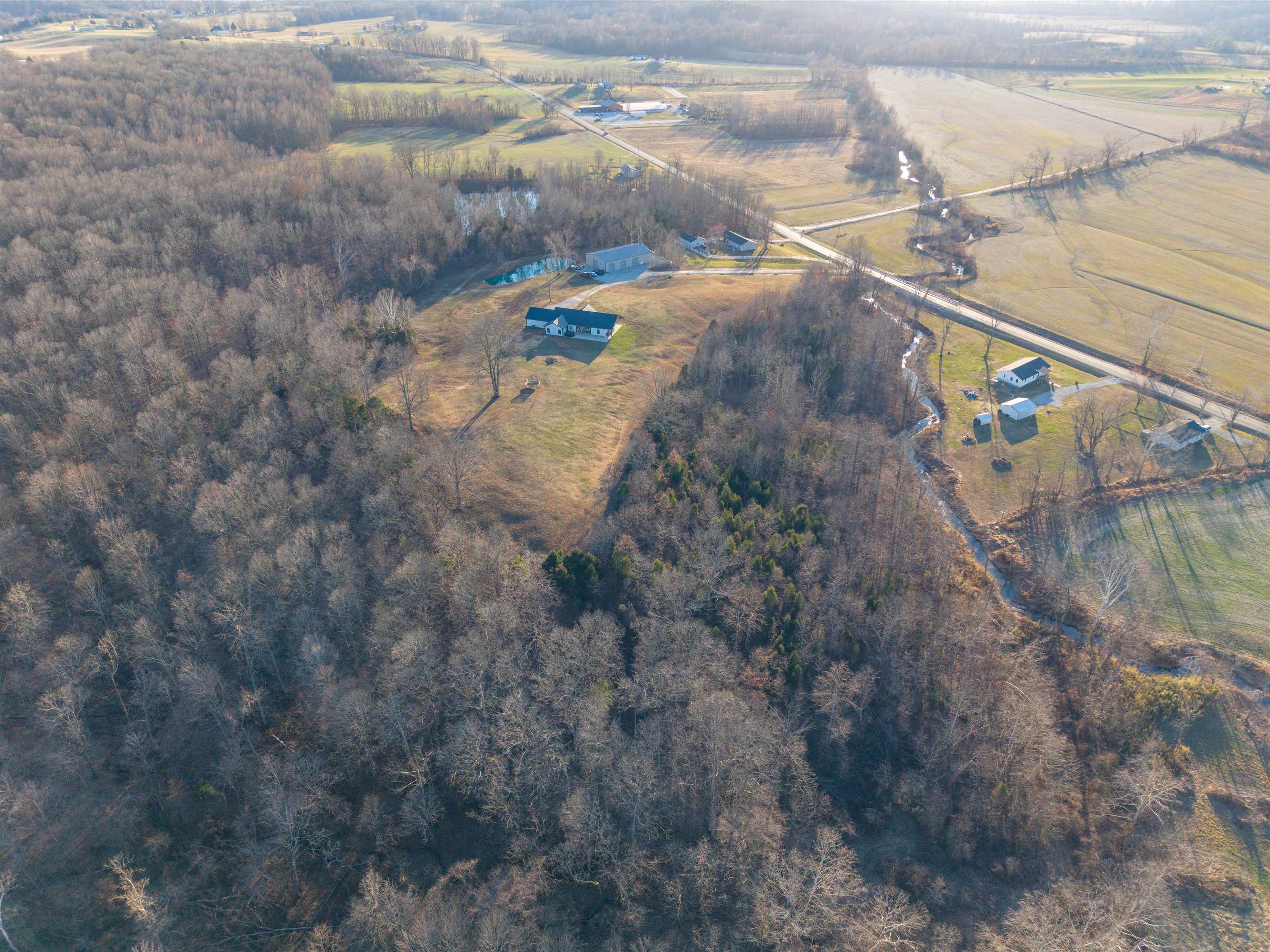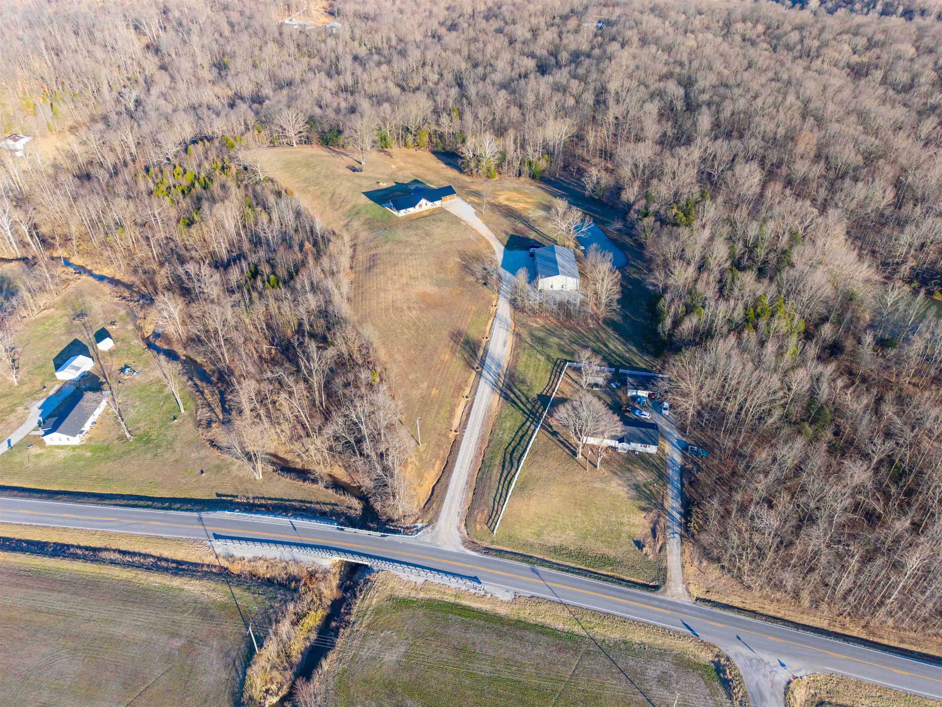 Set on over 11 private acres in Hartford, this custom-built estate delivers a rare blend of architectural presence, refined finishes, and unmatched functionality. The primary residence spans over 2,200 square feet and offers 3 bedrooms and 2.5 bathrooms, thoughtfully designed with multiple living spaces that create both flow and flexibility. Two fireplaces anchor the interior with warmth and character, while soaring ceilings and expansive windows invite natural light throughout. The open concept layout is enhanced by quartz countertops, designer tile showers, and upscale finishes that reflect quality craftsmanship at every turn. A covered porch wrapping entirely around the home extends the living space outdoors, offering panoramic views of the surrounding acreage and a true estate style setting. Complementing the main residence is a well appointed secondary home featuring over 1,100 square feet with 3 bedrooms and 2 full bathrooms. Ideal for multi generational living, guests, executive retreat space, or income producing potential, this additional residence provides versatility rarely found in properties of this caliber. The shop spans nearly 2,800 square feet and stands as a defining feature of the estate. Substantial in scale and built for serious use, it offers exceptional space for business operations, recreation, equipment, or collector storage. It is not simply an outbuilding, but an asset. With more than 3,300 total square feet of living space between two residences, expansive acreage, a high capacity shop, and only three minutes from the parkway, this property represents a rare opportunity to own a true lifestyle estate in Hartford.