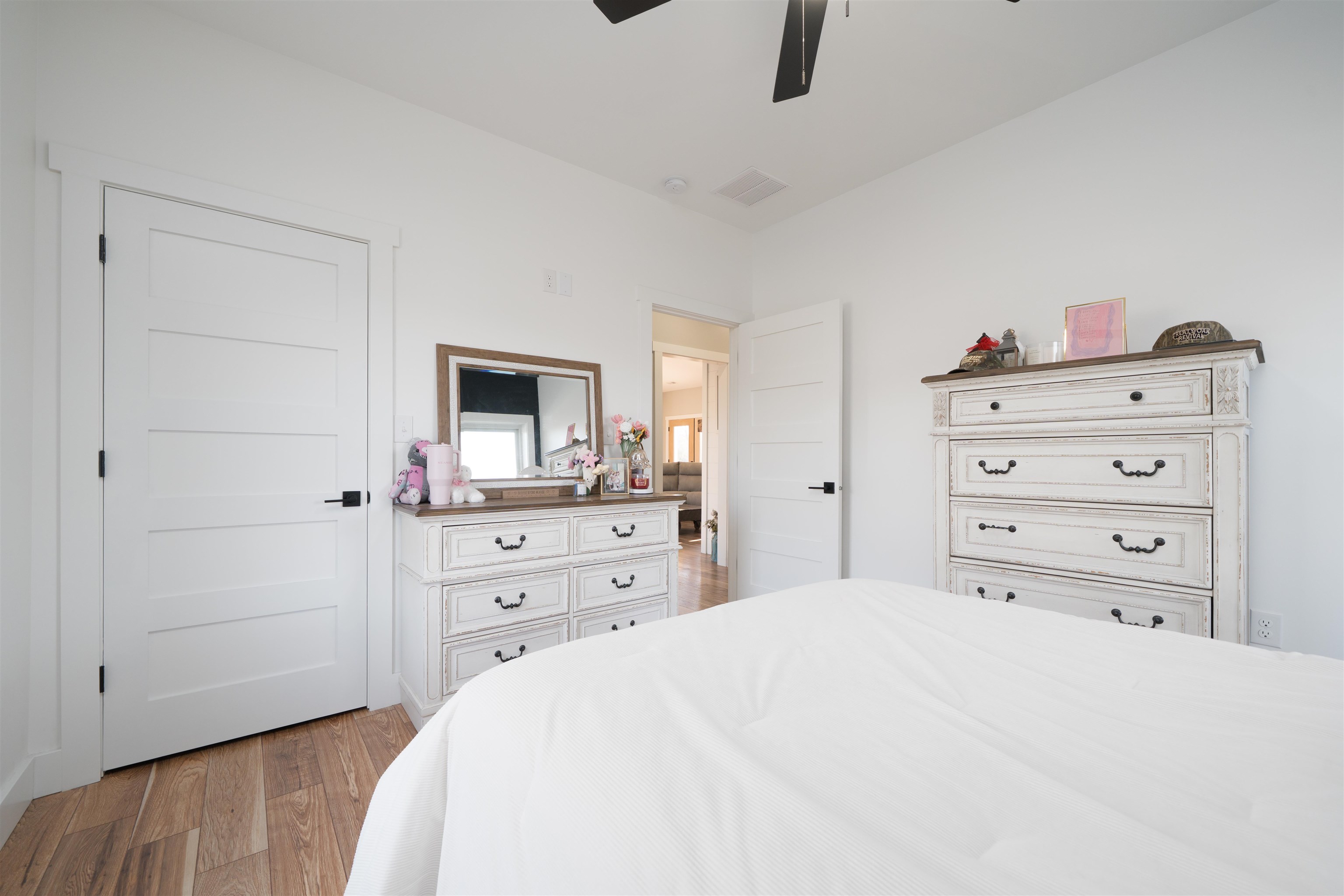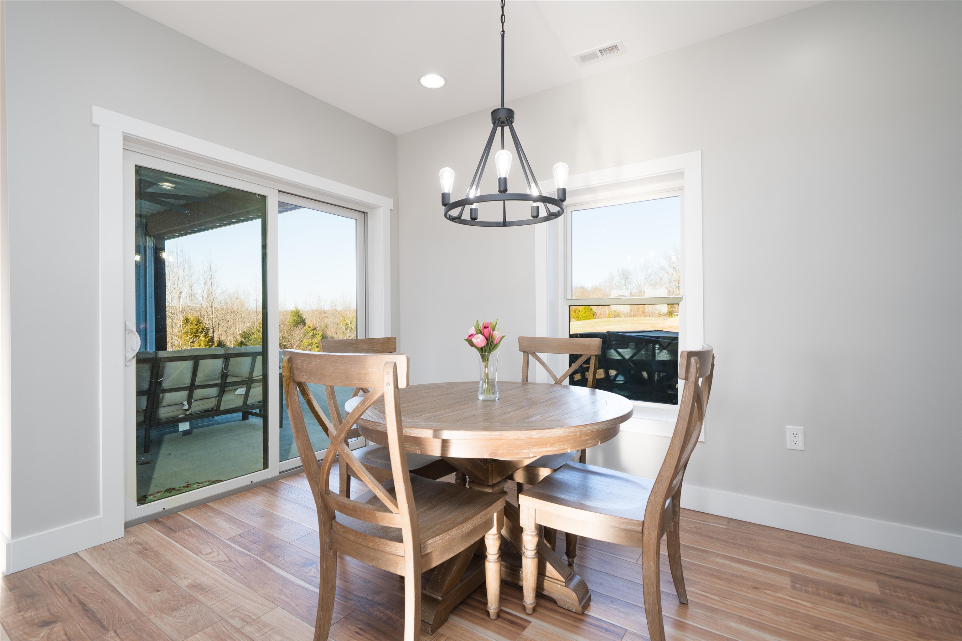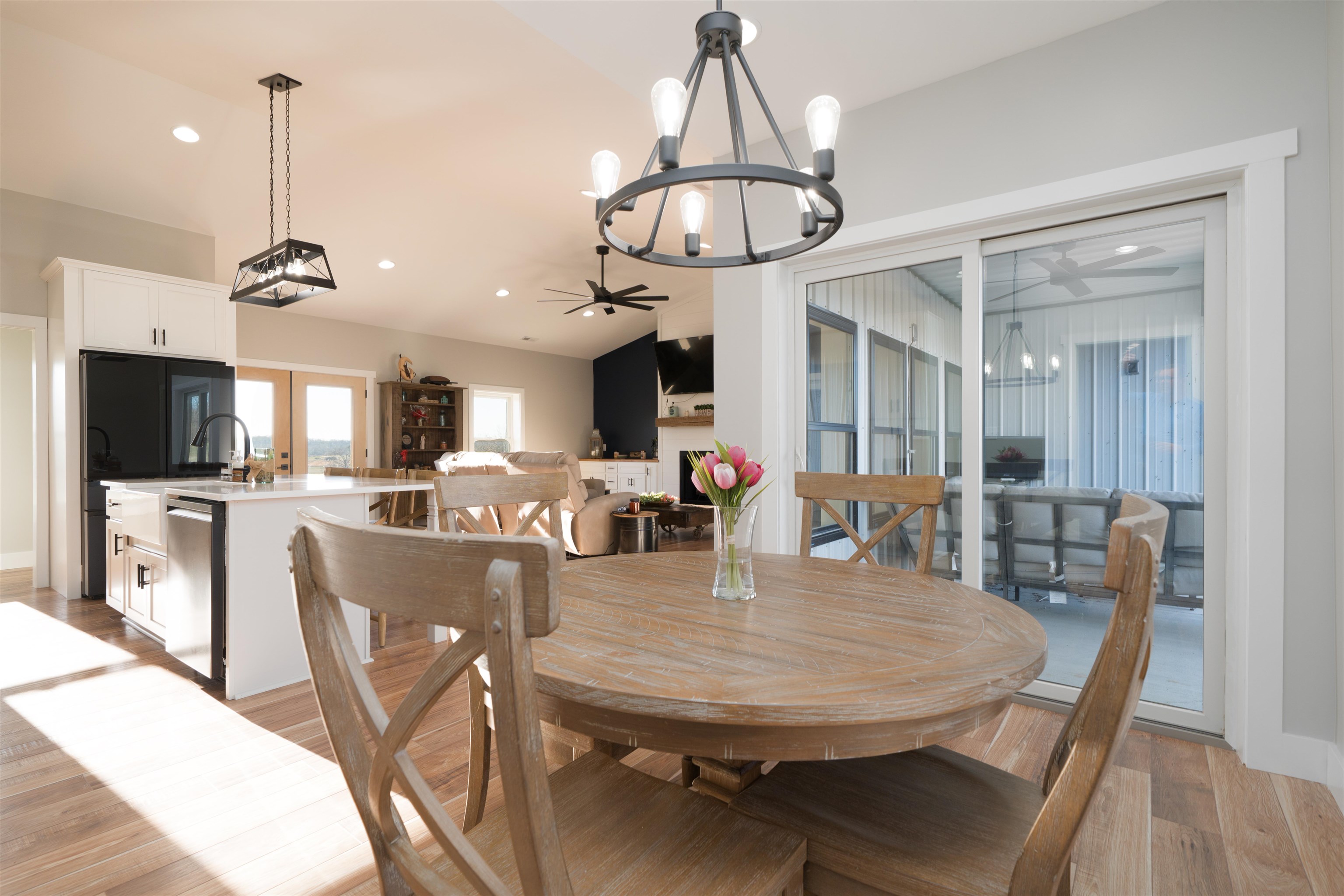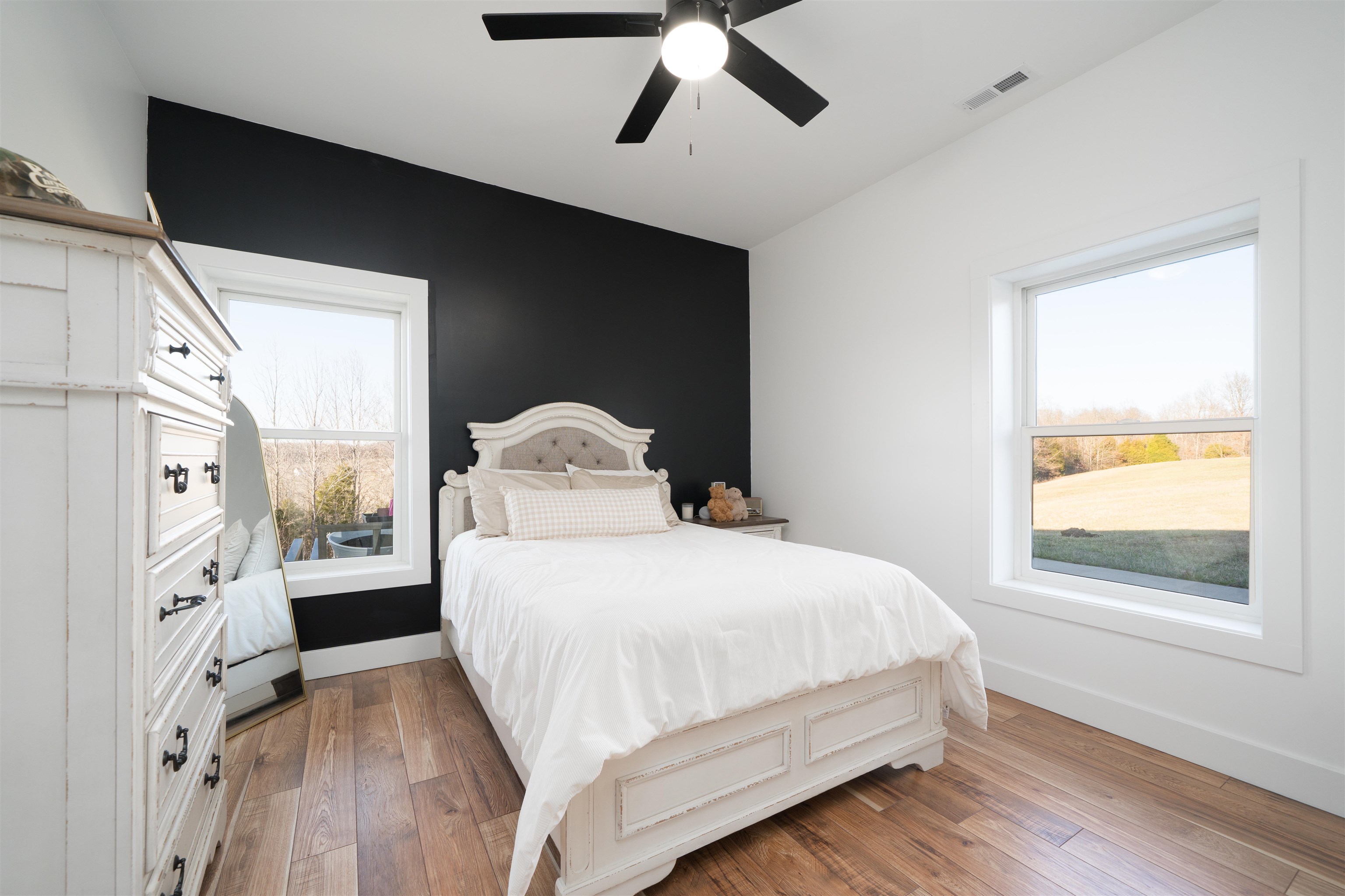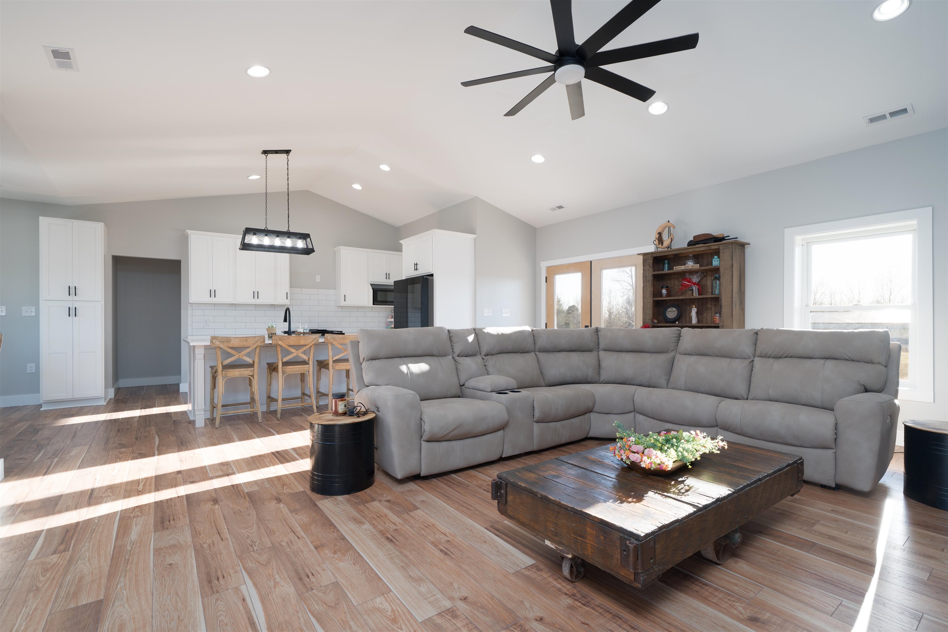 Set on over 11 private acres in Hartford, this custom-built estate delivers a rare blend of architectural presence, refined finishes, and unmatched functionality. The primary residence spans over 2,200 square feet and offers 3 bedrooms and 2.5 bathrooms, thoughtfully designed with multiple living spaces that create both flow and flexibility. Two fireplaces anchor the interior with warmth and character, while soaring ceilings and expansive windows invite natural light throughout. The open concept layout is enhanced by quartz countertops, designer tile showers, and upscale finishes that reflect quality craftsmanship at every turn. A covered porch wrapping entirely around the home extends the living space outdoors, offering panoramic views of the surrounding acreage and a true estate style setting. Complementing the main residence is a well appointed secondary home featuring over 1,100 square feet with 3 bedrooms and 2 full bathrooms. Ideal for multi generational living, guests, executive retreat space, or income producing potential, this additional residence provides versatility rarely found in properties of this caliber. The shop spans nearly 2,800 square feet and stands as a defining feature of the estate. Substantial in scale and built for serious use, it offers exceptional space for business operations, recreation, equipment, or collector storage. It is not simply an outbuilding, but an asset. With more than 3,300 total square feet of living space between two residences, expansive acreage, a high capacity shop, and only three minutes from the parkway, this property represents a rare opportunity to own a true lifestyle estate in Hartford.