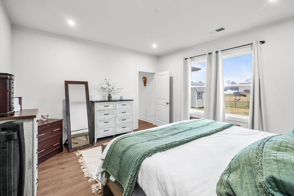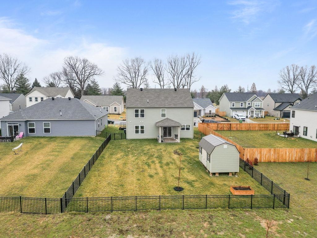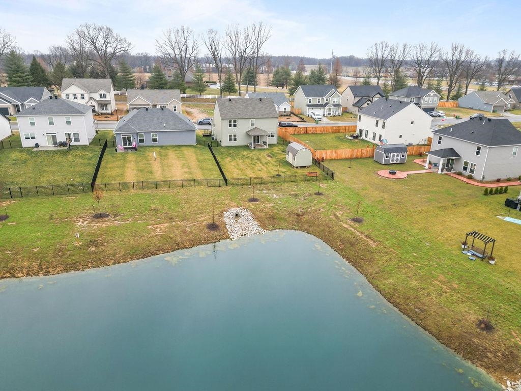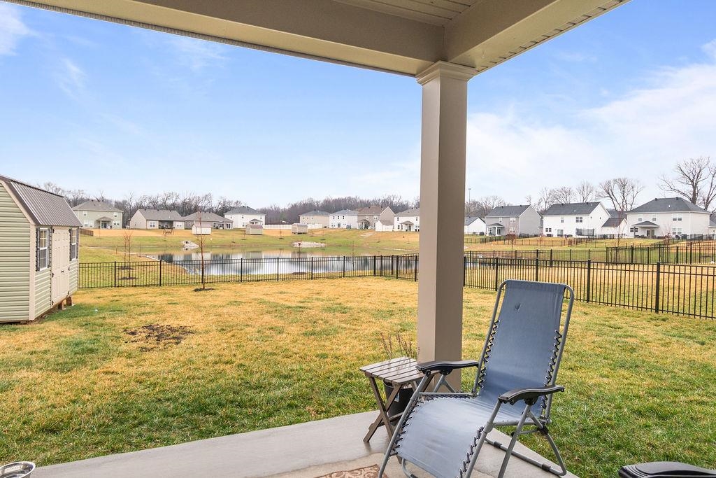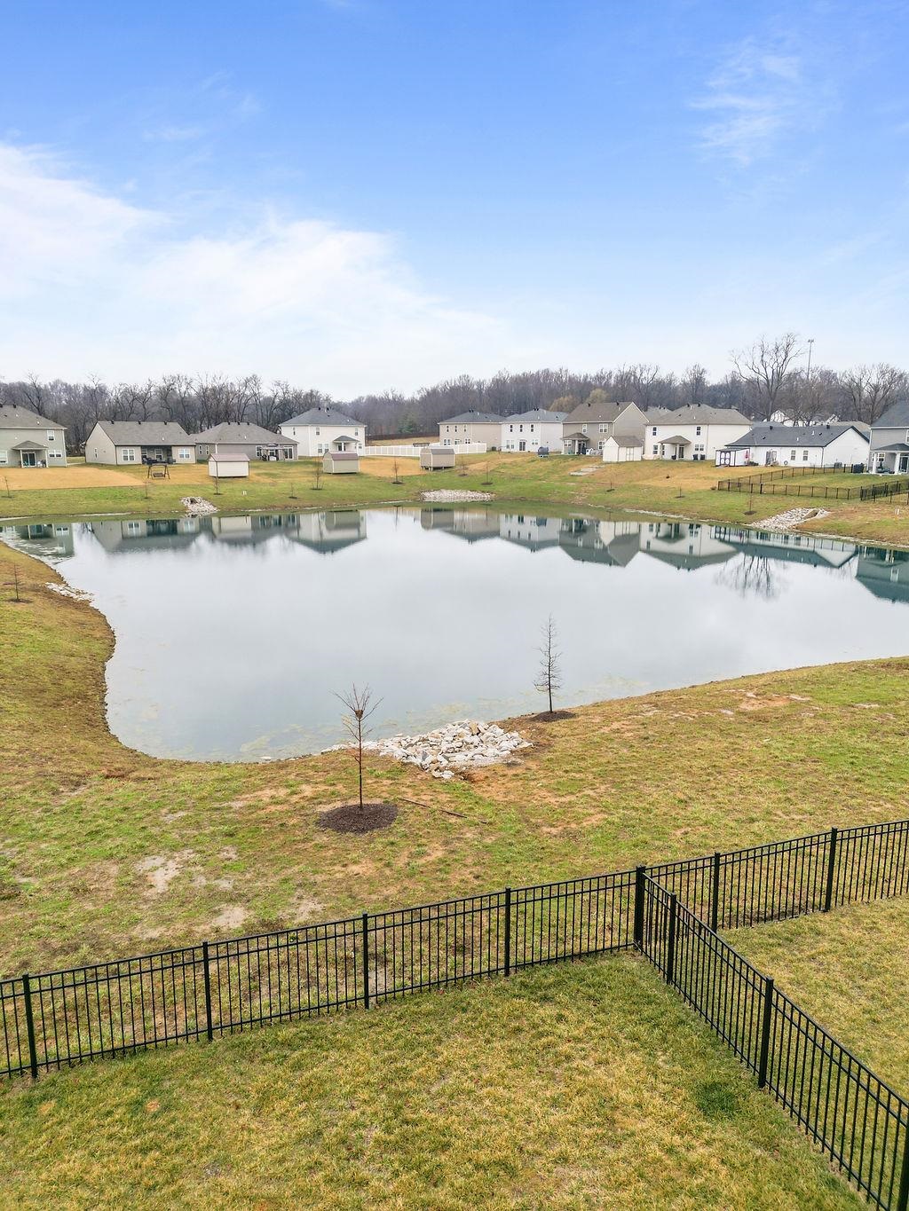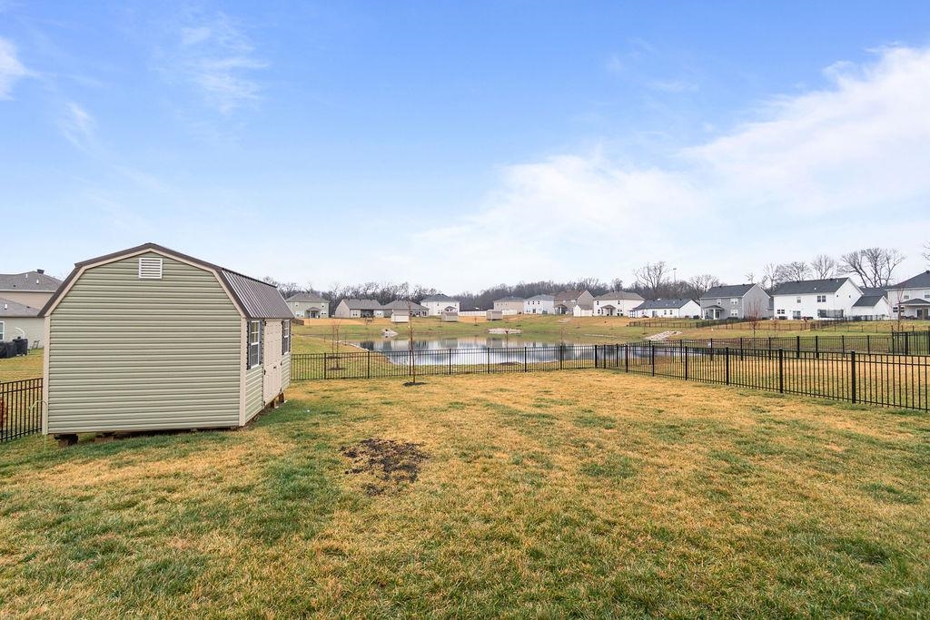 Just built in 2024-skip the construction timeline and move right in! This stunning National floorplan offers 4 bedrooms and a beautiful lake view, with a primary suite conveniently located on the main floor. Designed with comfort and style, the open-concept layout centers around a spacious kitchen featuring a large granite island-perfect for entertaining, gathering, and everyday living. Step outside to your covered patio and take in peaceful lake views, whether you're sipping your morning coffee or unwinding with sunset skies. Upstairs you will find three generously sized bedrooms plus a bonus room. Storage won't be an issue here! In addition to abundant interior storage, the property includes an attached double garage and a detached storage building for all the extras. The iron fence encloses the backyard, allowing beautiful views.