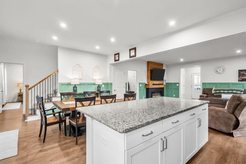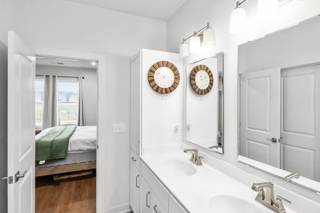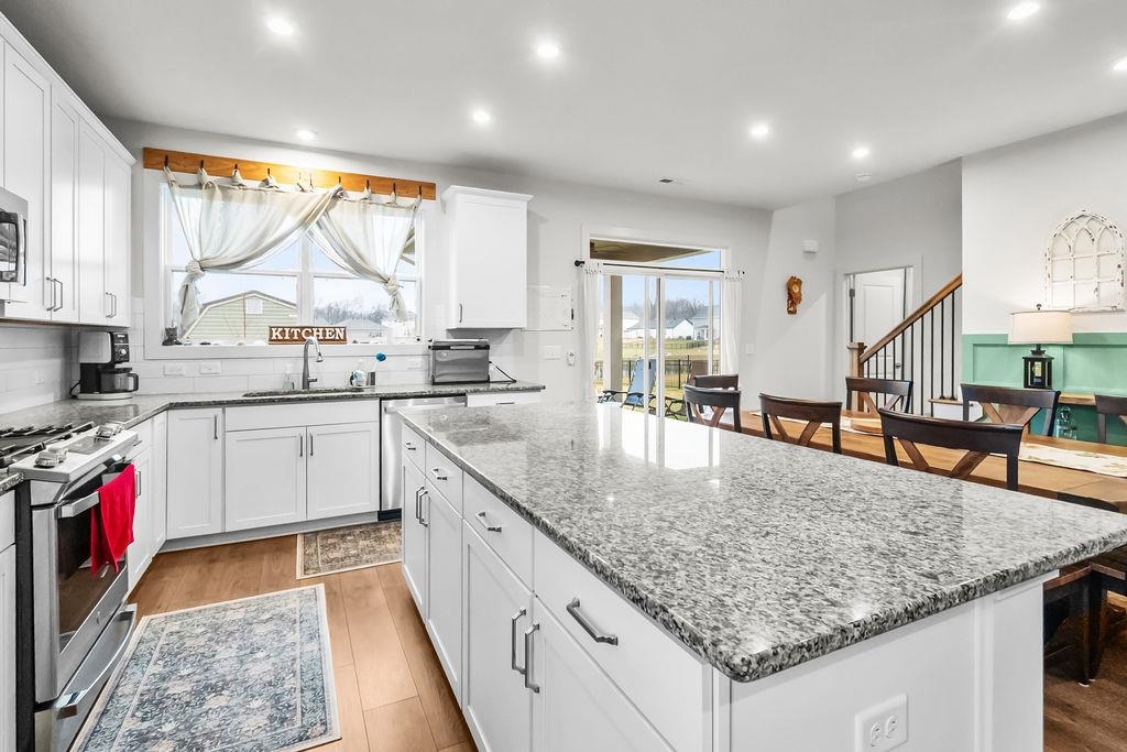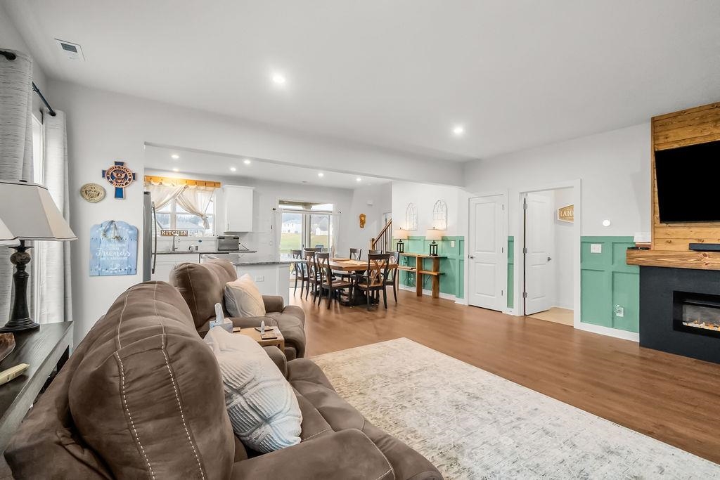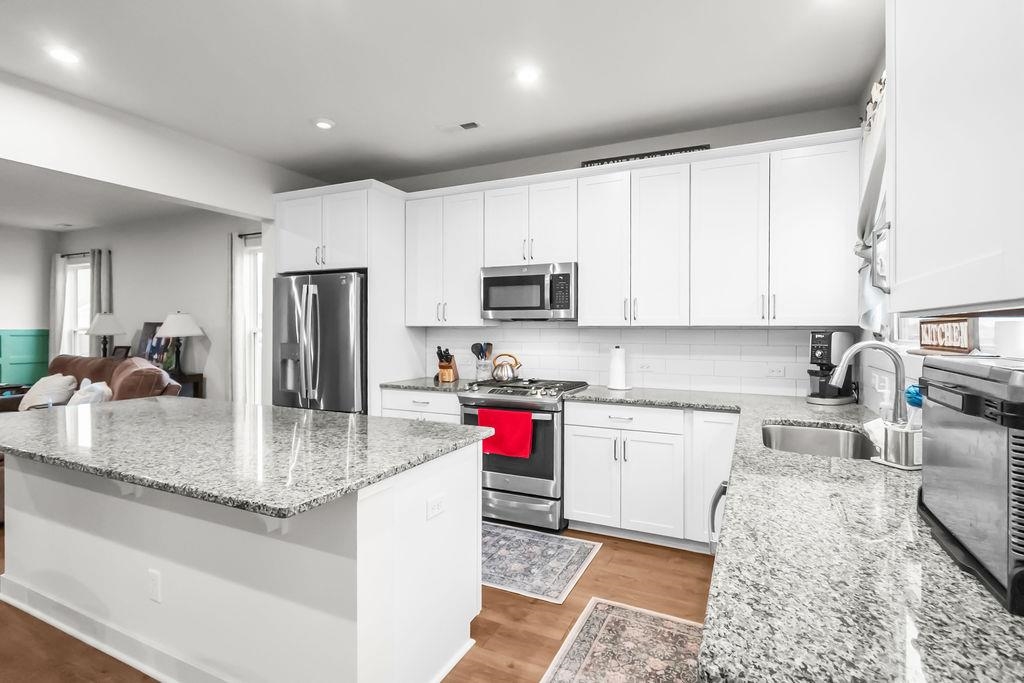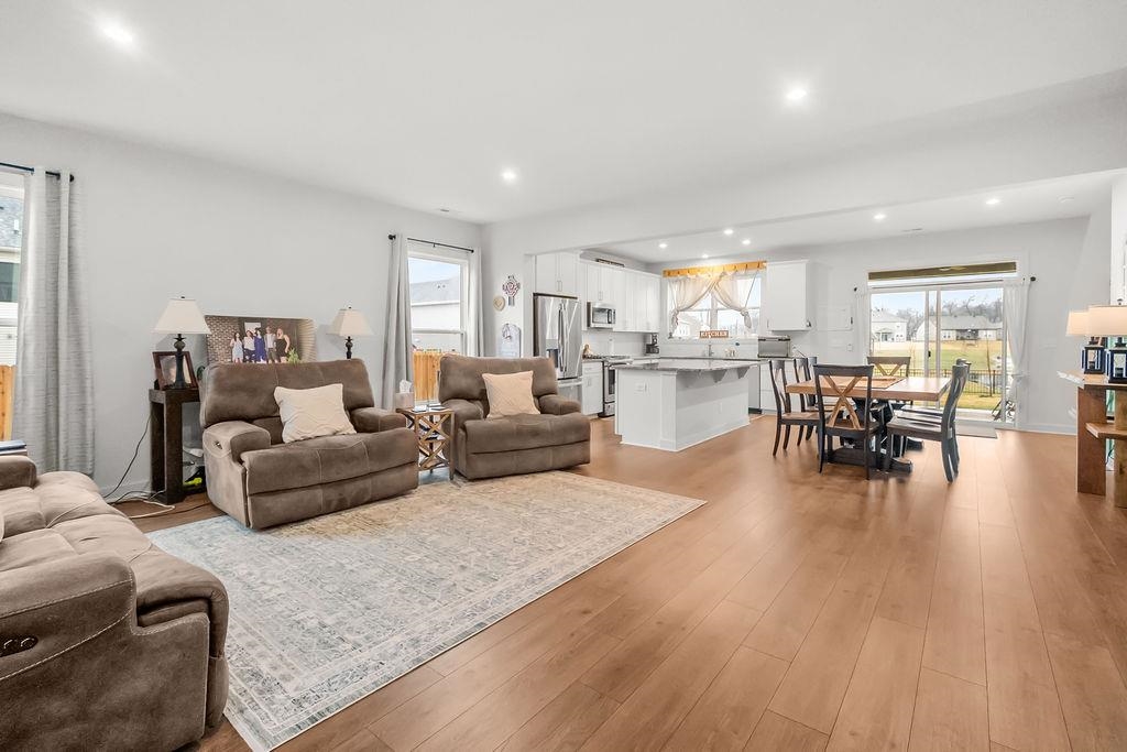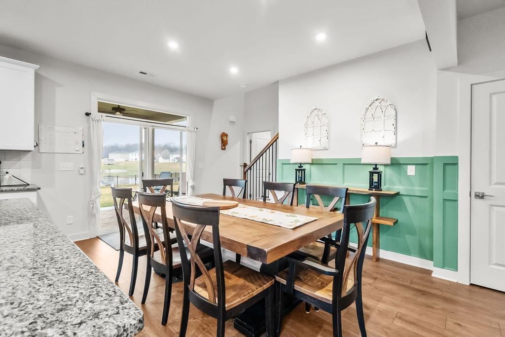 Just built in 2024-skip the construction timeline and move right in! This stunning National floorplan offers 4 bedrooms and a beautiful lake view, with a primary suite conveniently located on the main floor. Designed with comfort and style, the open-concept layout centers around a spacious kitchen featuring a large granite island-perfect for entertaining, gathering, and everyday living. Step outside to your covered patio and take in peaceful lake views, whether you're sipping your morning coffee or unwinding with sunset skies. Upstairs you will find three generously sized bedrooms plus a bonus room. Storage won't be an issue here! In addition to abundant interior storage, the property includes an attached double garage and a detached storage building for all the extras. The iron fence encloses the backyard, allowing beautiful views.