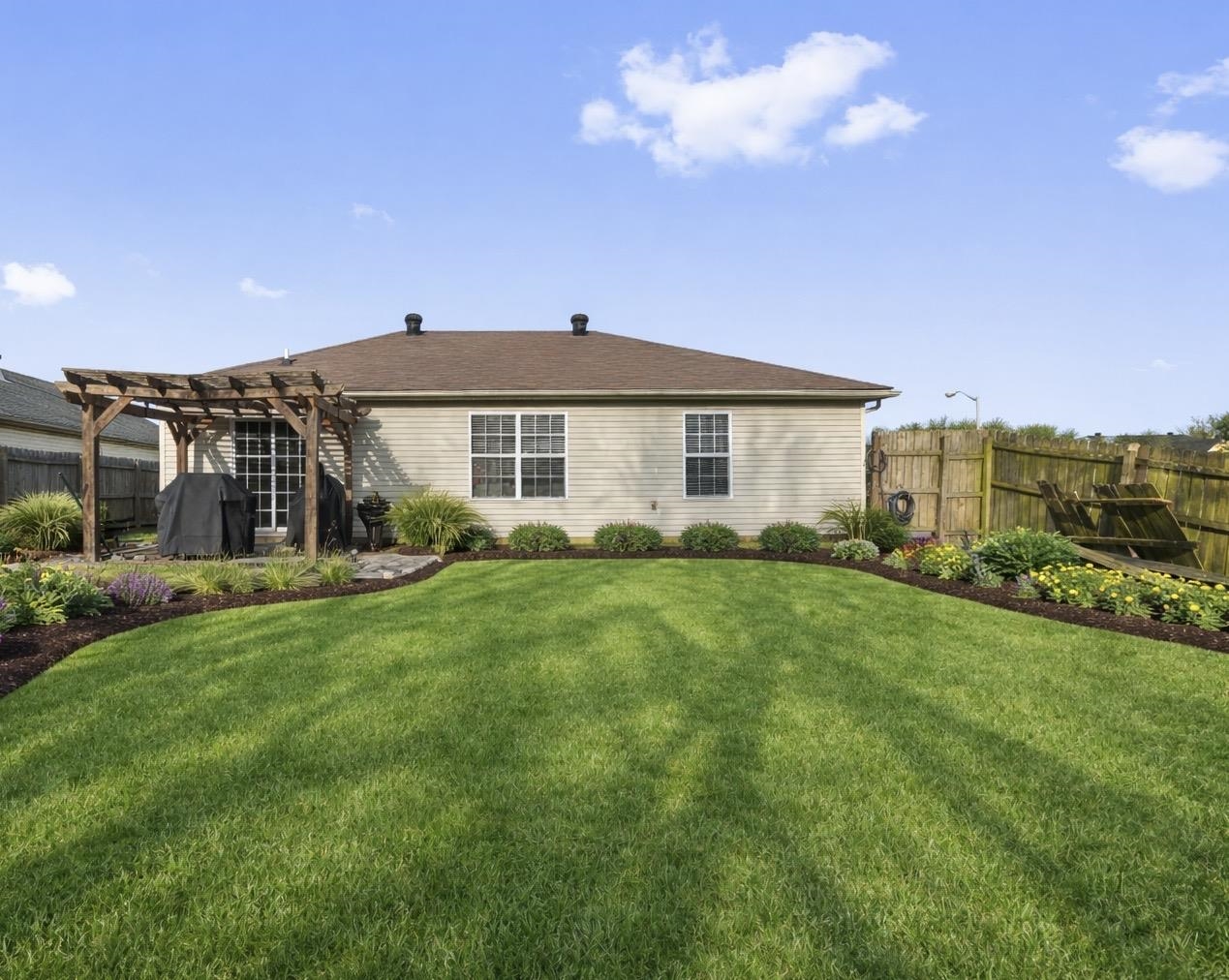 Ultra Clean 1-LEVEL Home that is open with a Vaulted Great Room. Updated major systems for worry free living. 3 Bedrooms, 2 Baths and a 2-Car ATTACHED Garage. Nice Privacy Fenced backyard for outdoor activities. Empty lot next door can't be built on for added privacy ! Located in The Heartlands where you can take the sidewalk and ride or walk to the GreenBelt Trail System with over 20 miles of paved trails, lakes, woods, etc Walking distance to the grocery, restaurants and more. Perfect nearly step free home that you will love. Please see the professional photography...