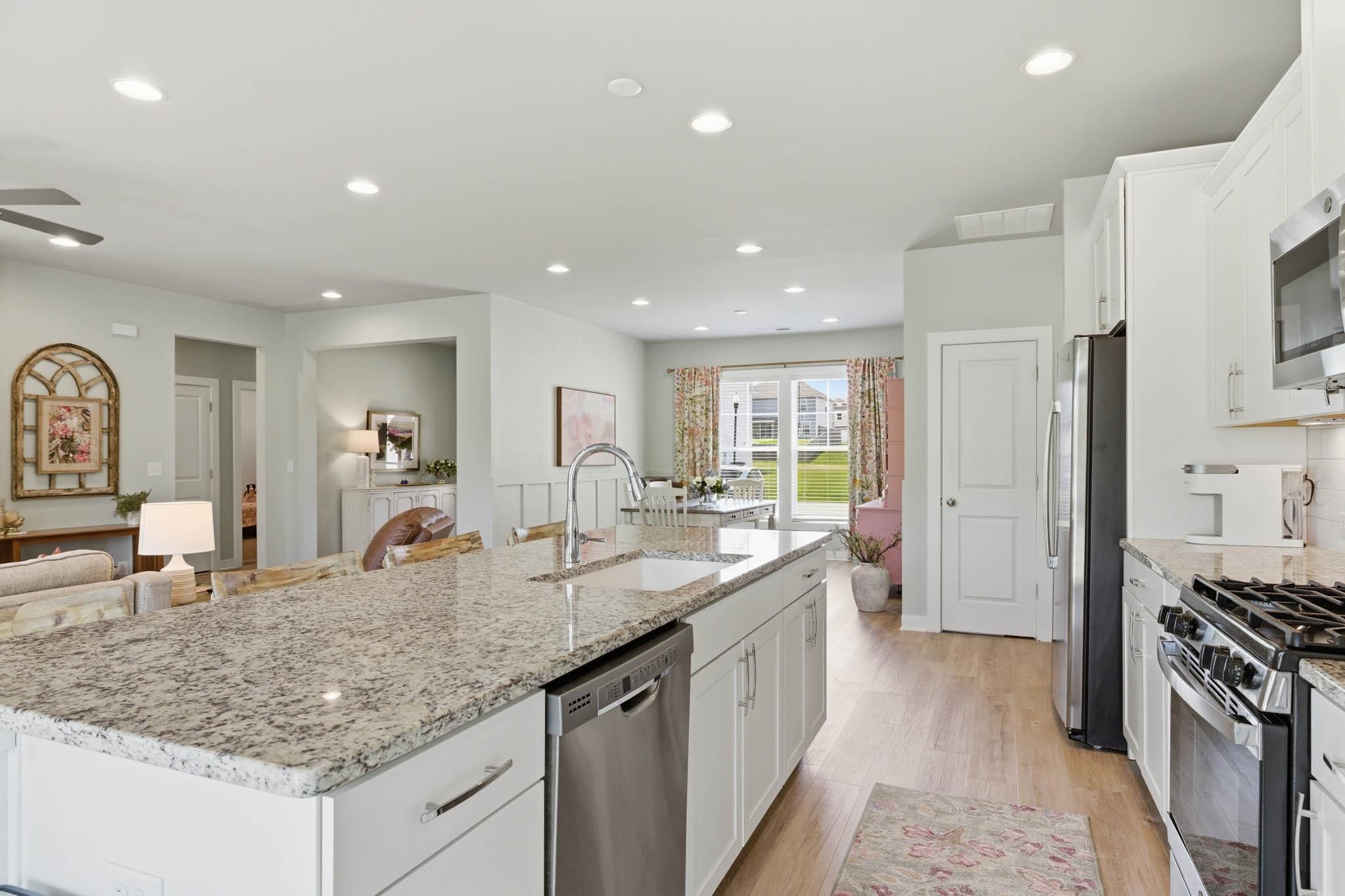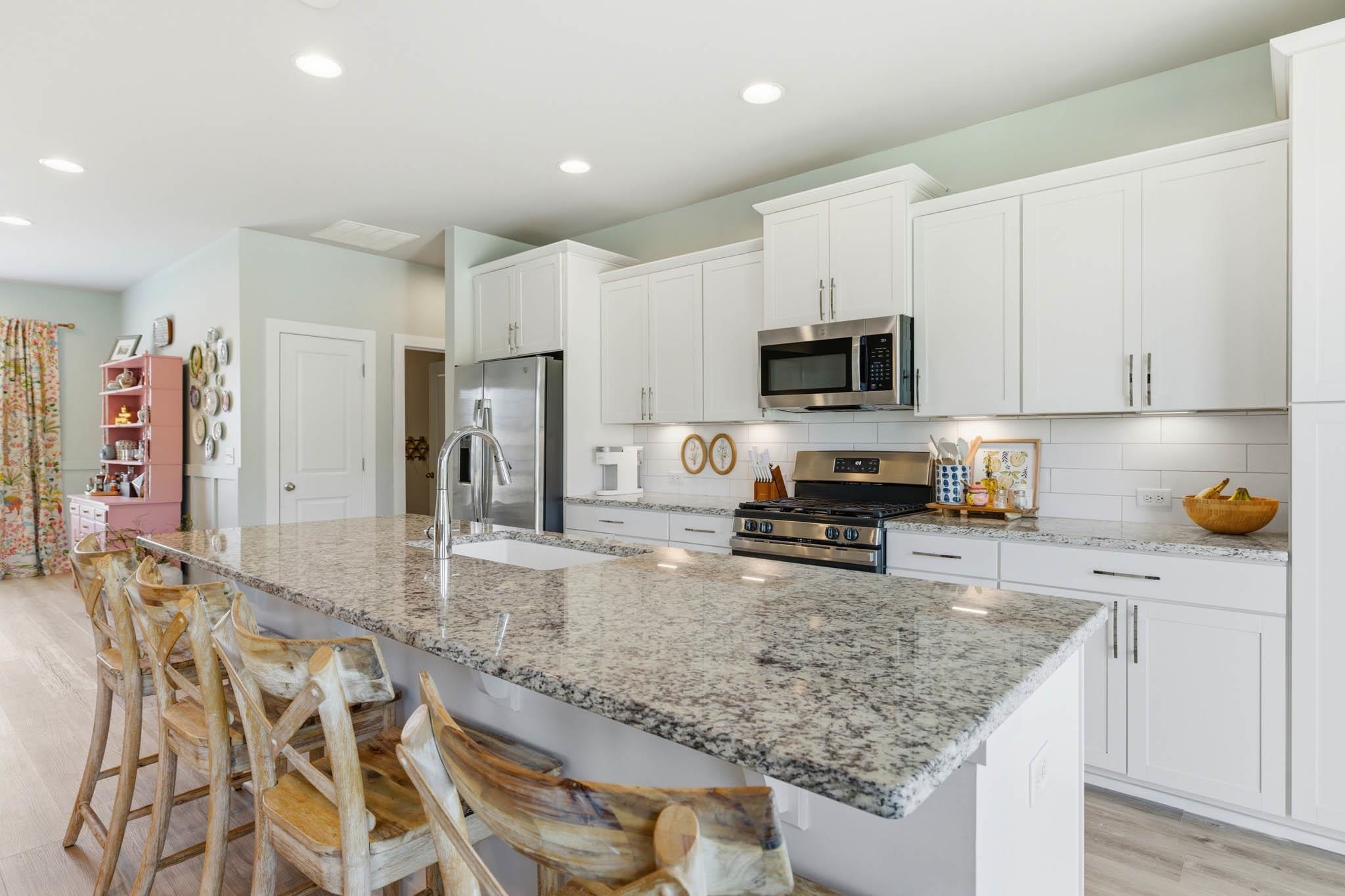 Welcome to this beautifully upgraded 4-bedroom, 2-bath home featuring a split floor plan! From the moment you step inside, you’ll notice the fresh paint and new flooring throughout the main living areas. The kitchen is a standout with granite countertops, stainless steel appliances, and a layout perfect for both everyday living and entertaining. The split-bedroom design provides privacy, while the primary suite features a walk-in shower and spacious closet. Take advantage of the bonus room above the garage—perfect for a home office, playroom, or guest space. Outside, enjoy a fully fenced backyard ready for gatherings, pets, or peaceful evenings under the covered patio. Loaded with upgrades throughout—this home offers incredible value you simply can’t replicate at this price. USDA financing eligible to those who qualify!