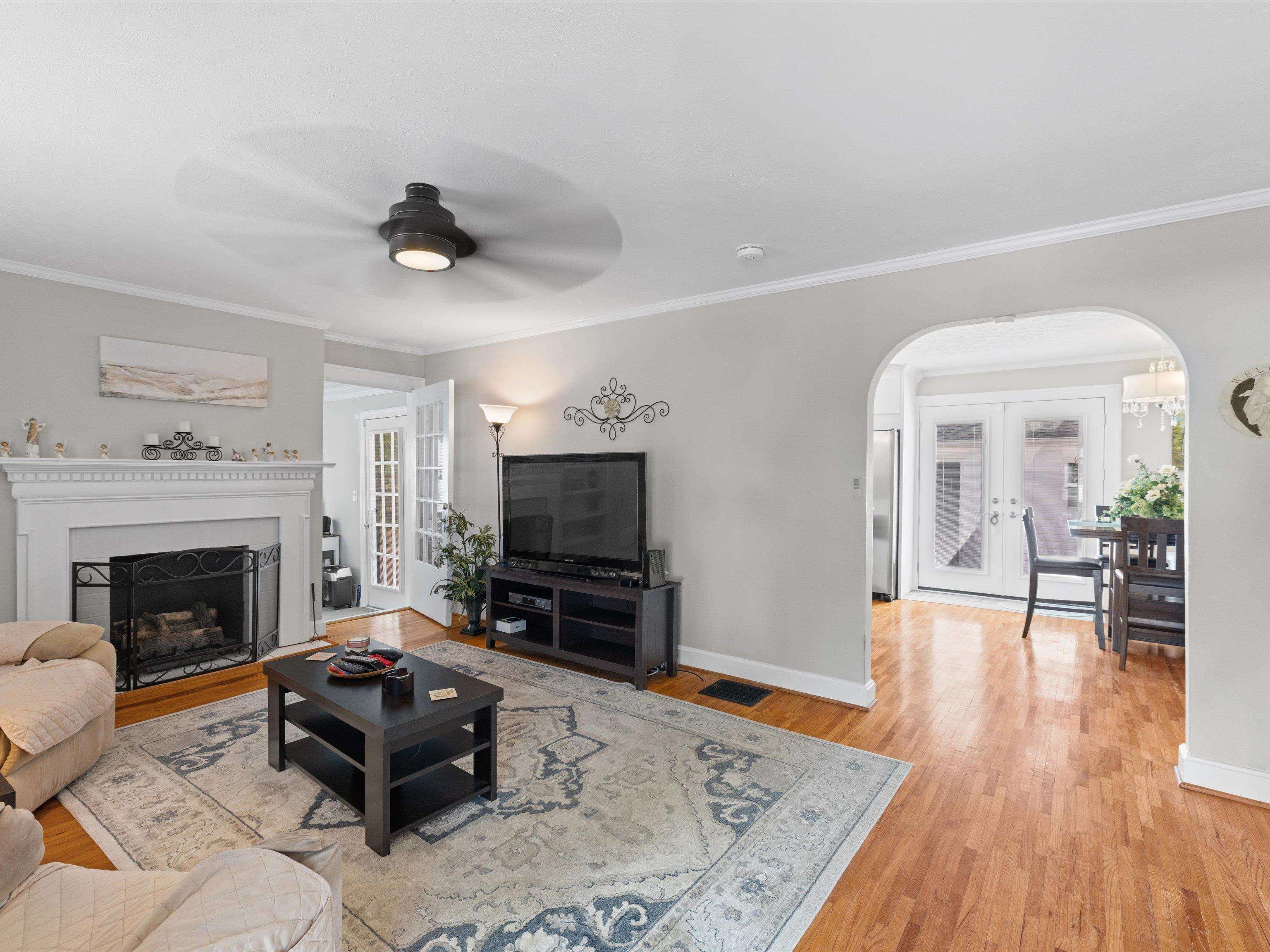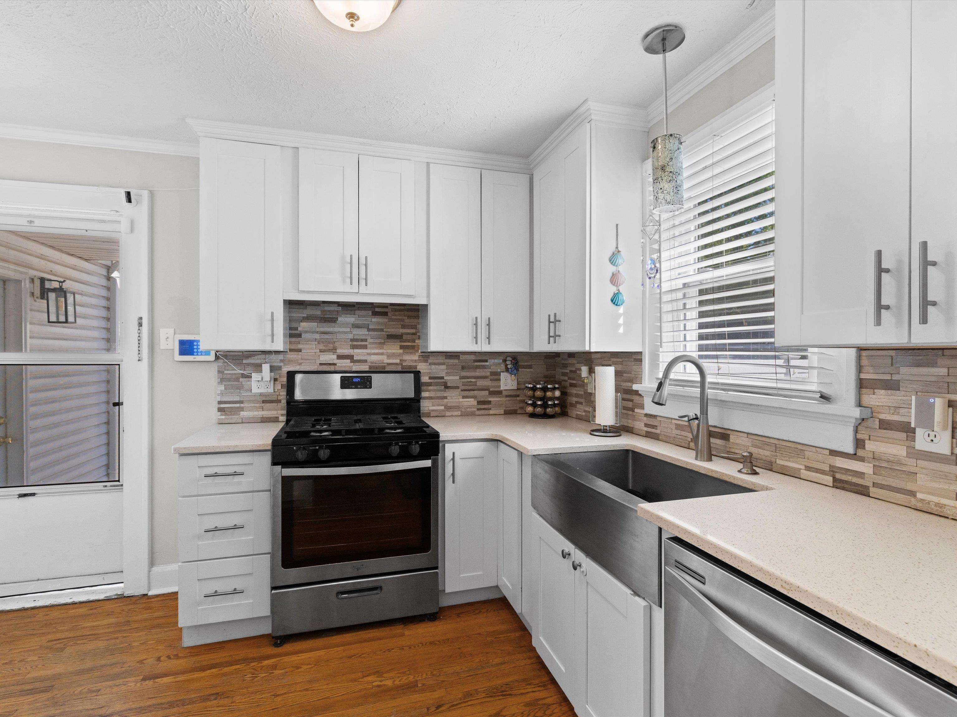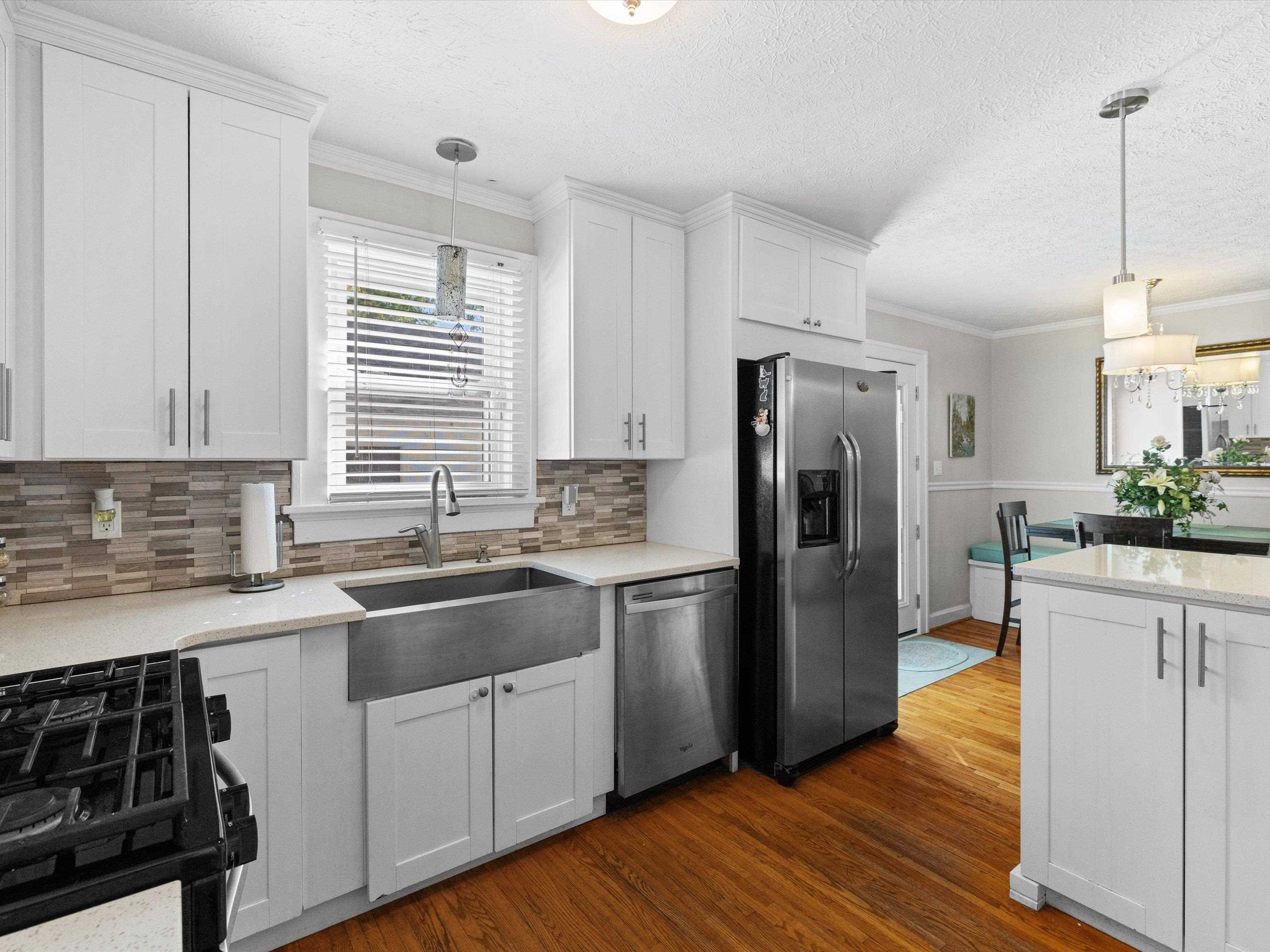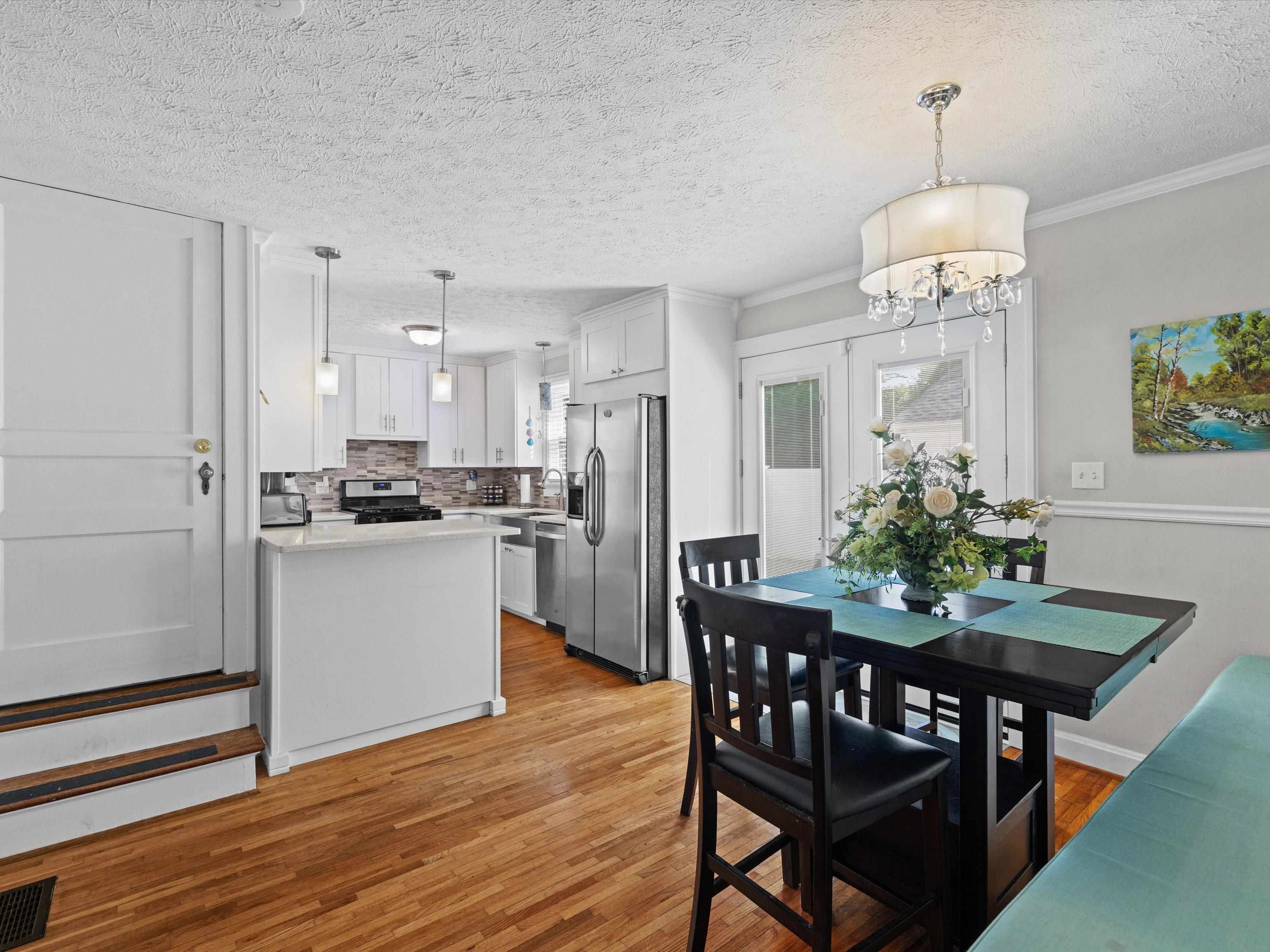 Charming Cape Cod in beautiful Dogwood Azalea Trail Area! Amenities include hardwood floors, updated kitchen with newer cabinets, durable quartz countertops and tile back splash. Stainless Range, frig and dishwasher included. Living room offers decorative fireplace flanked by built-ins for books and family photos. Dining area with built-in seating plus additional bar. Retreat to the sun room to read or relax-- also makes a great office! 2 Bedrooms on the main level share the updated bath featuring tub shower combo, built in storage and convenient laundry chute. Get away to the private suite upstairs offering plenty of space for a king-size bed, sitting area or hobby room. Updated full bath is the icing on the cake! Outside you'll find a privacy fenced patio leading to the detached 24 x 24 garage. Garage offers workbench and storage, plus there is a separate storage building. X-tra wide drive for additional off-street parking. House has new roof and some siding 2025. HVAC new 2024. Call today to schedule your private viewing! Audio/Video Security cameras inside and out.
