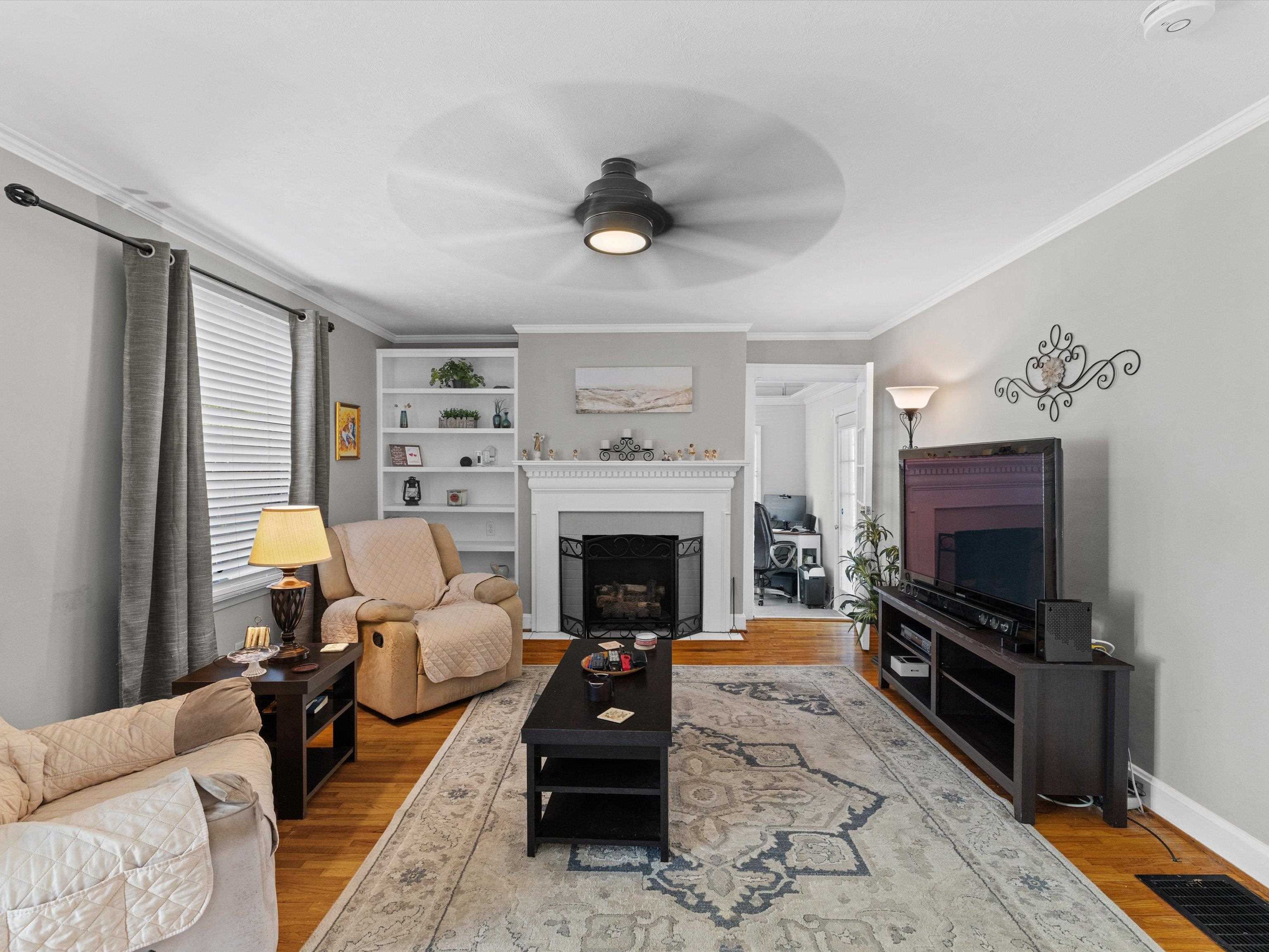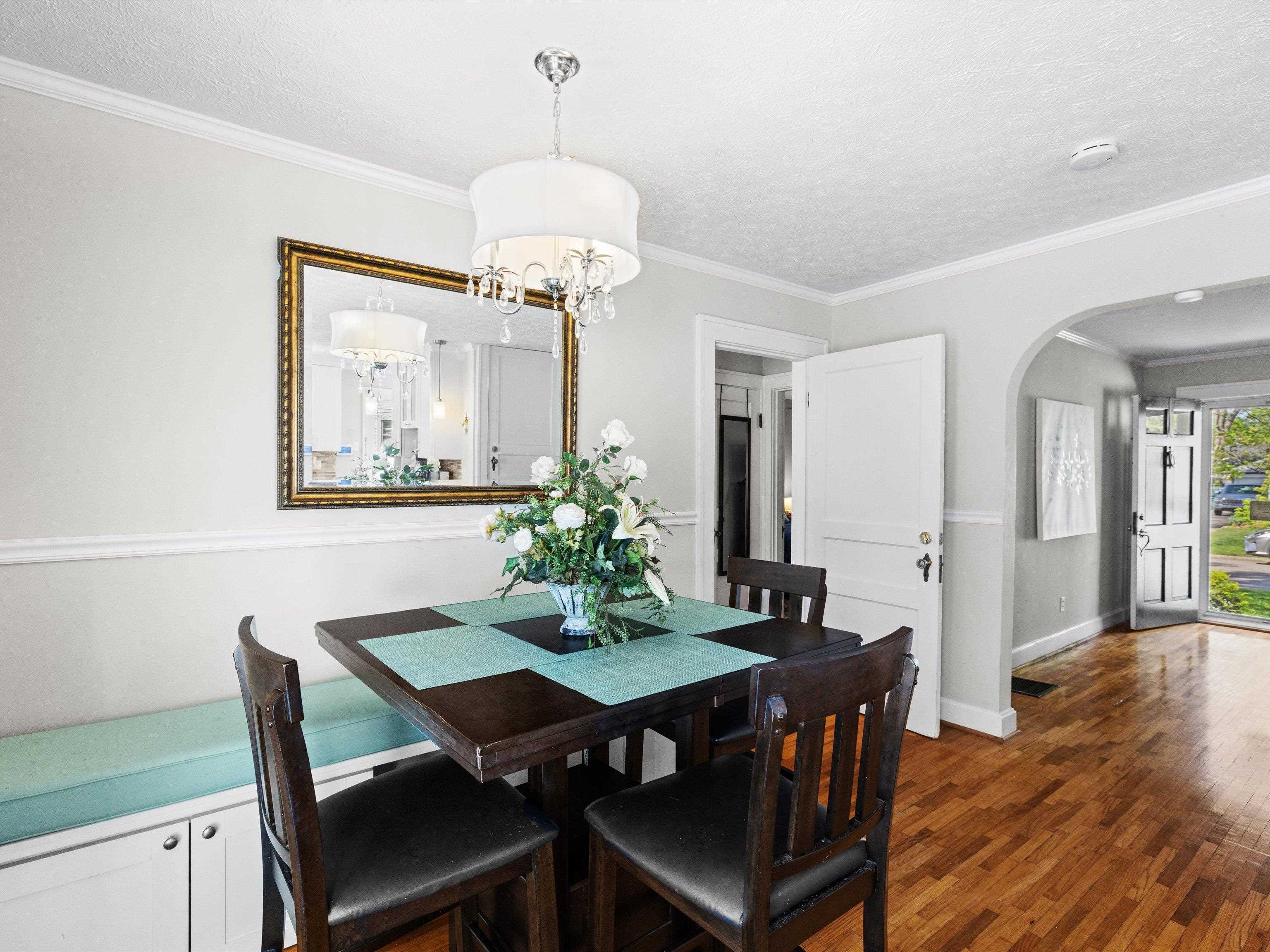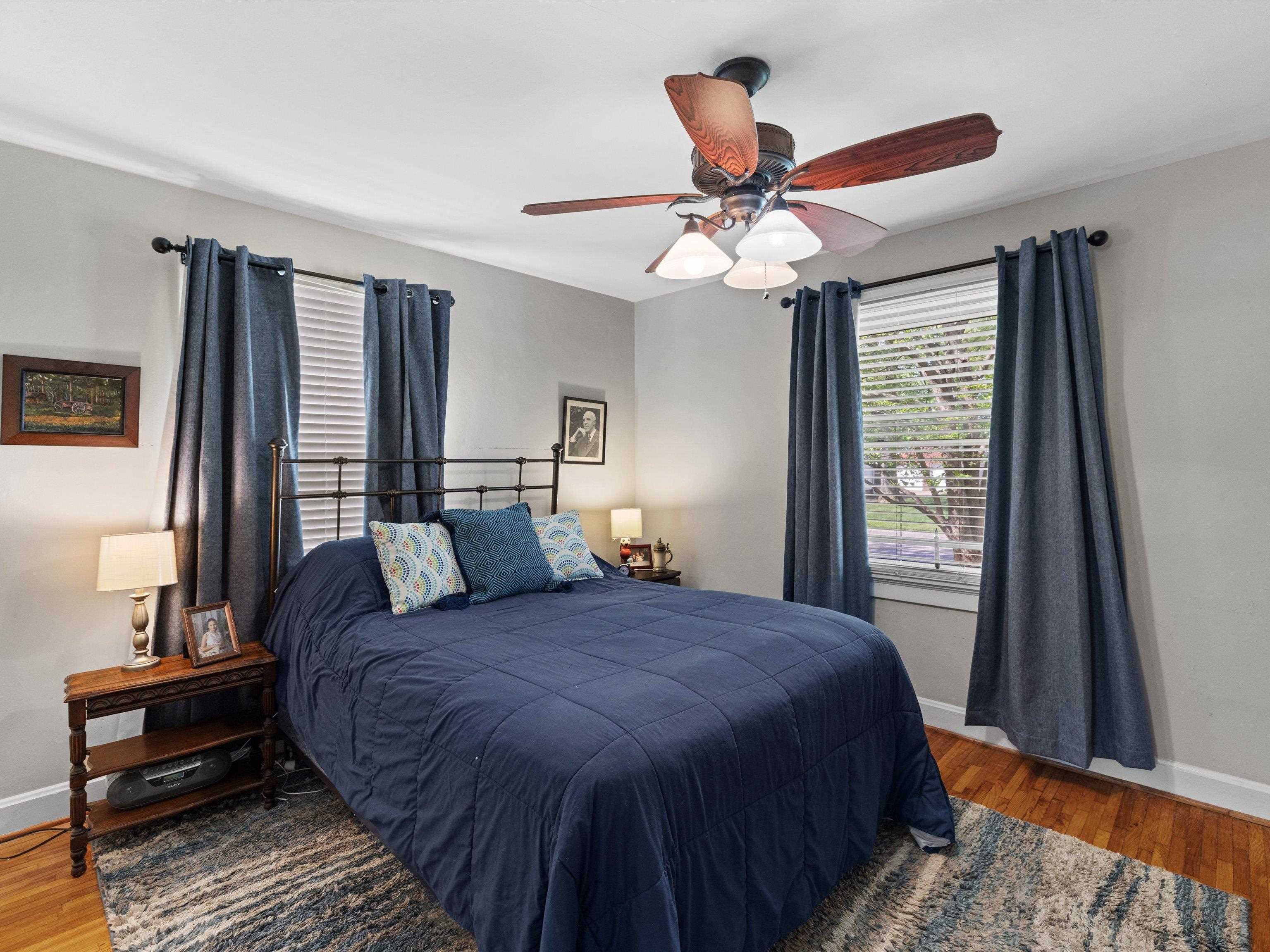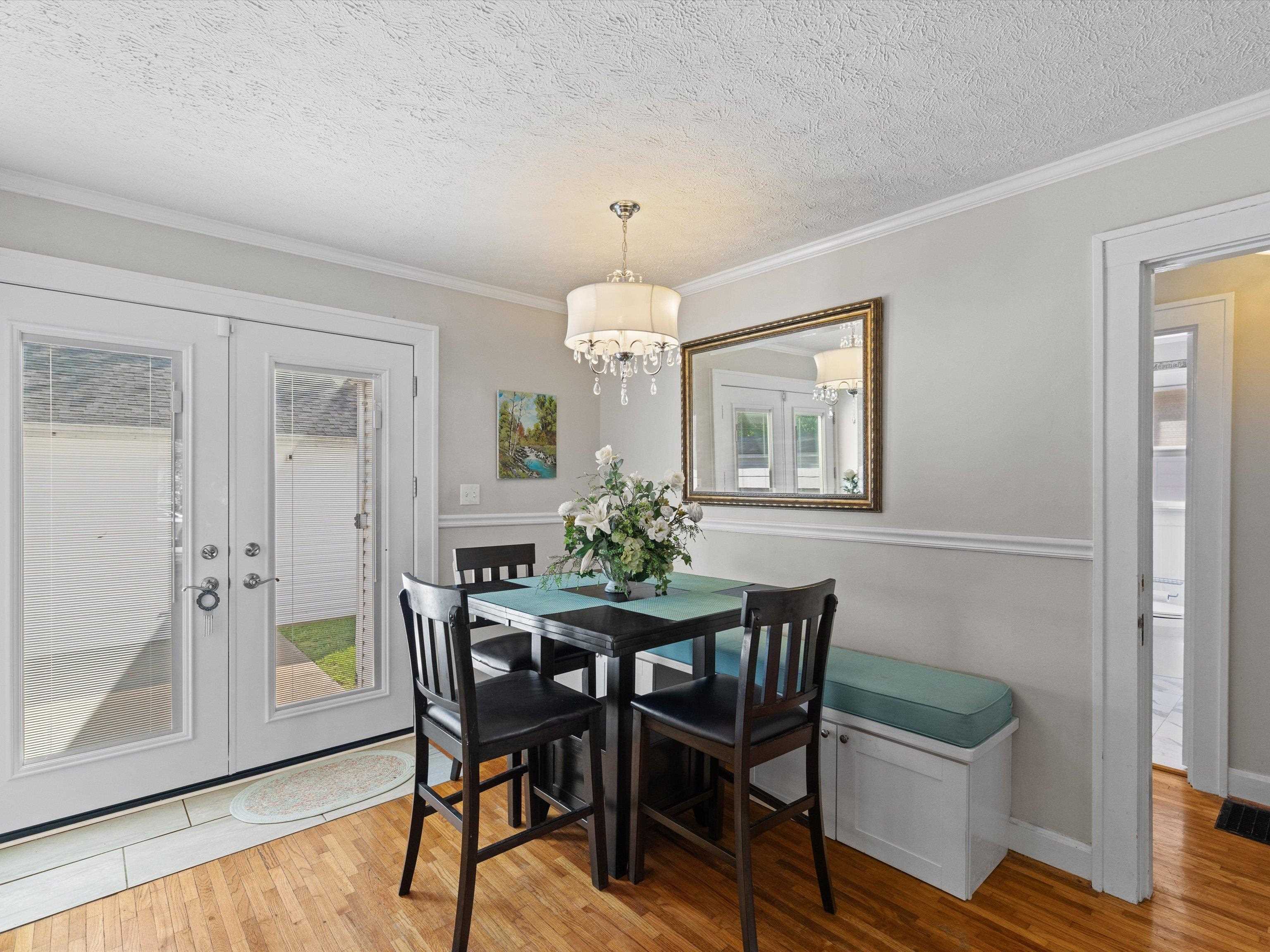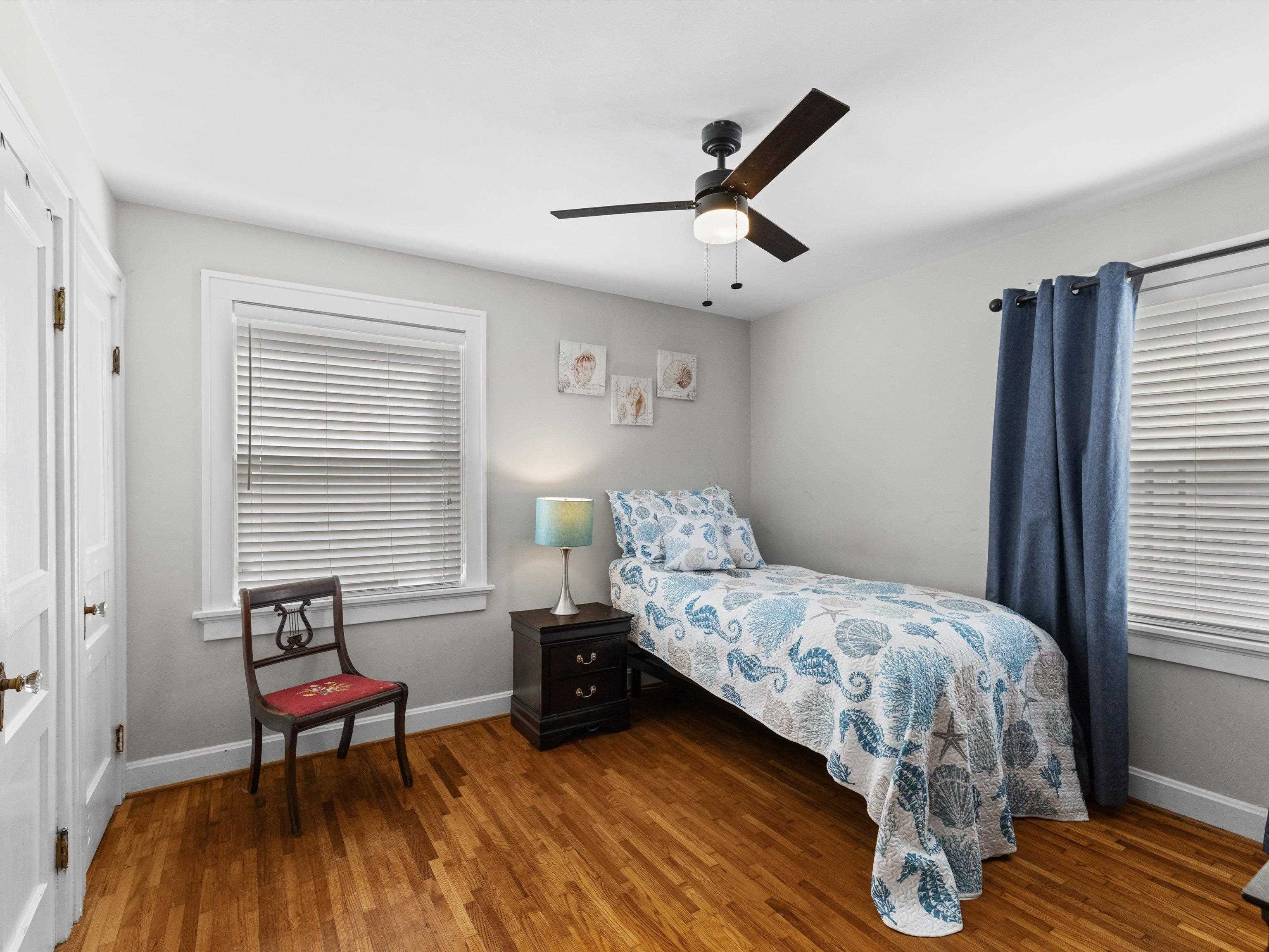 Charming Cape Cod in beautiful Dogwood Azalea Trail Area! Amenities include hardwood floors, updated kitchen with newer cabinets, durable quartz countertops and tile back splash. Stainless Range, frig and dishwasher included. Living room offers decorative fireplace flanked by built-ins for books and family photos. Dining area with built-in seating plus additional bar. Retreat to the sun room to read or relax-- also makes a great office! 2 Bedrooms on the main level share the updated bath featuring tub shower combo, built in storage and convenient laundry chute. Get away to the private suite upstairs offering plenty of space for a king-size bed, sitting area or hobby room. Updated full bath is the icing on the cake! Outside you'll find a privacy fenced patio leading to the detached 24 x 24 garage. Garage offers workbench and storage, plus there is a separate storage building. X-tra wide drive for additional off-street parking. House has new roof and some siding 2025. HVAC new 2024. Call today to schedule your private viewing! Audio/Video Security cameras inside and out.